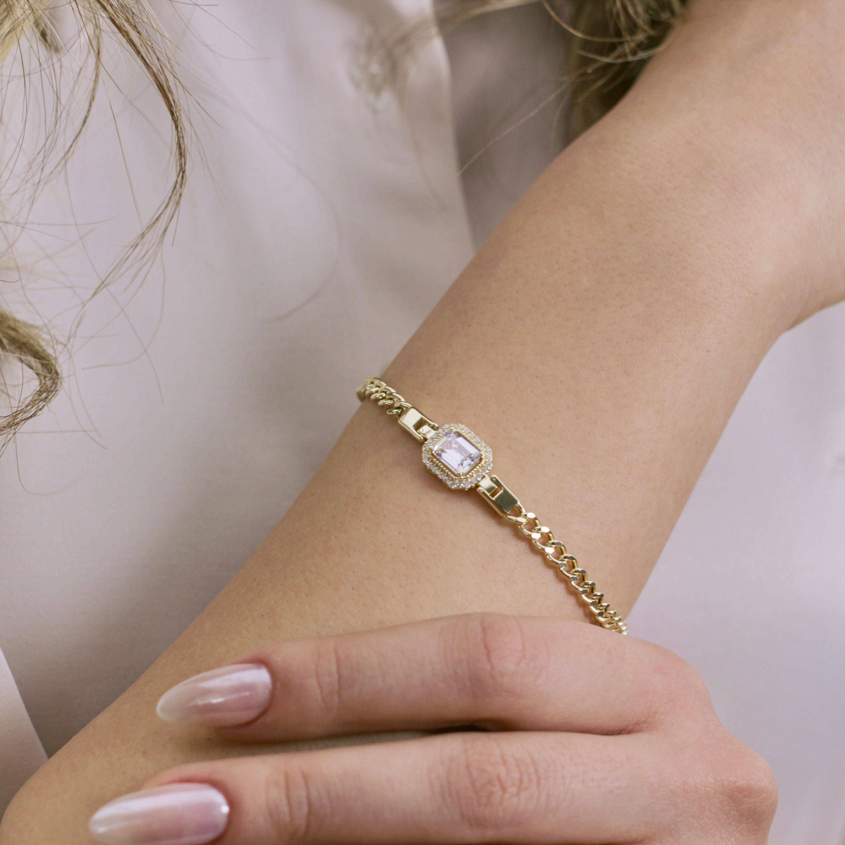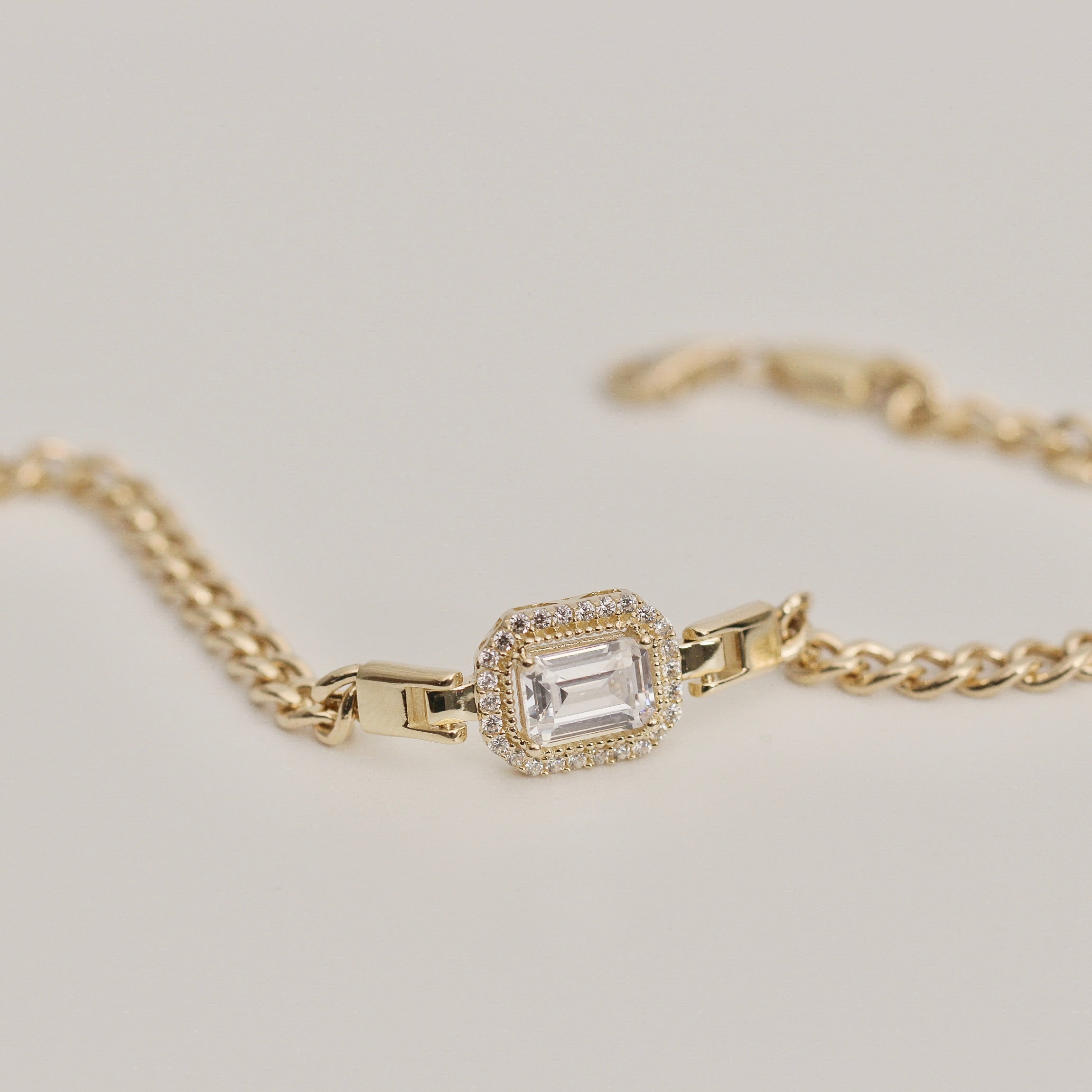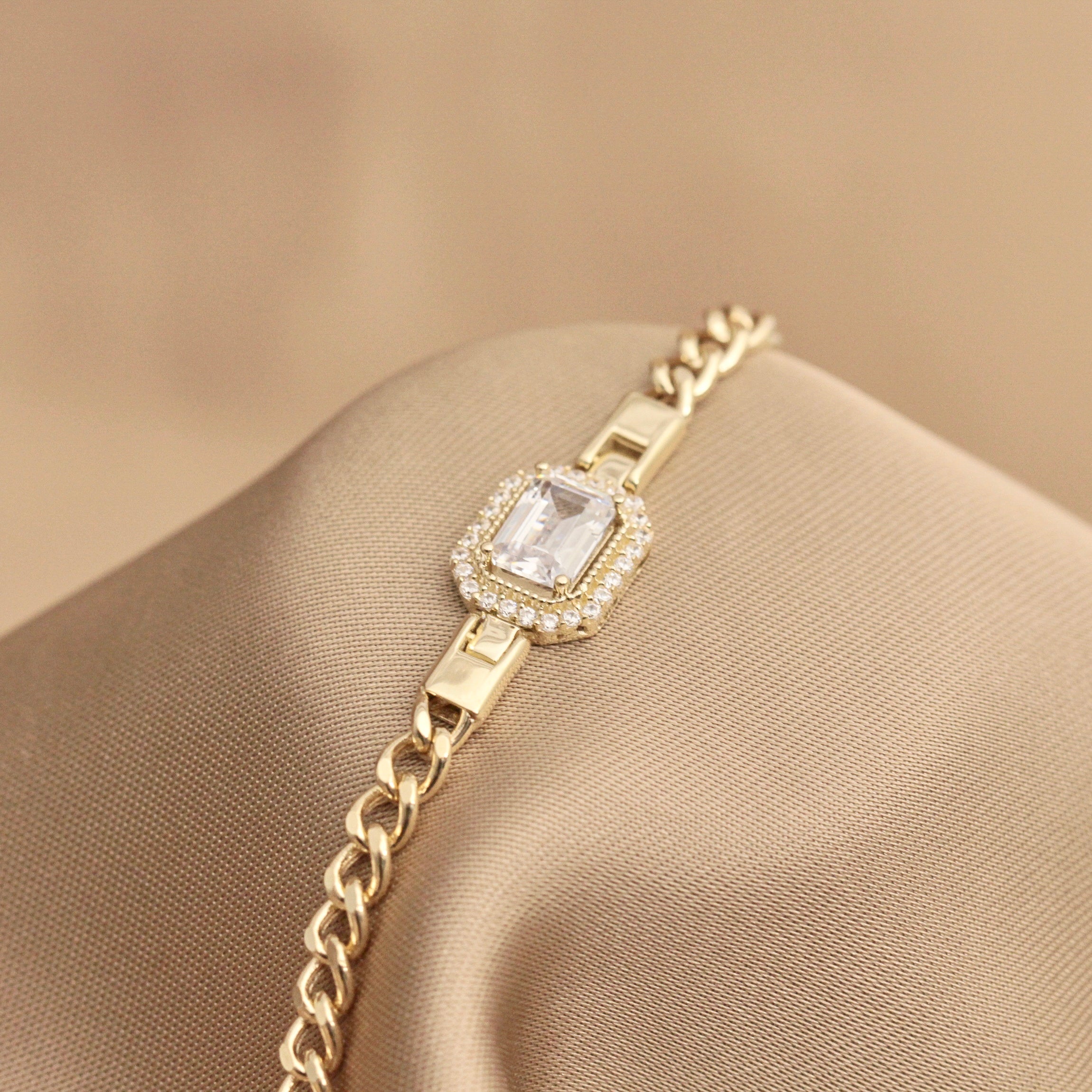 14K Solid Gold Baguette Bracelet Gourment Chain