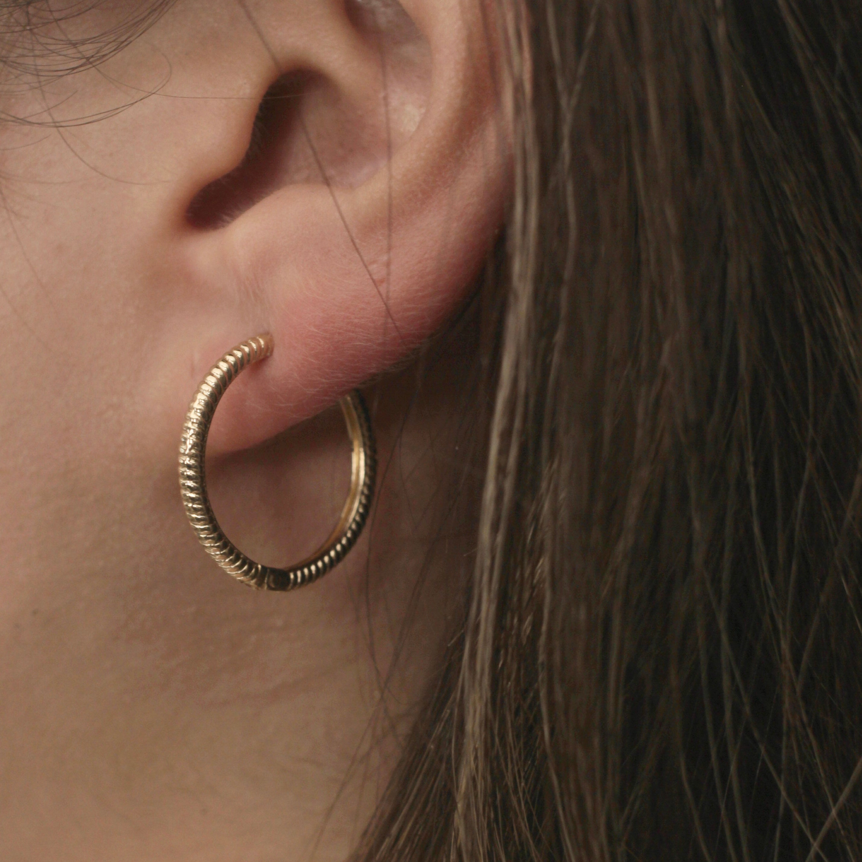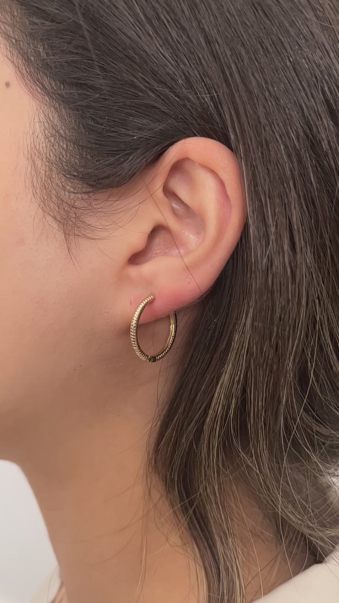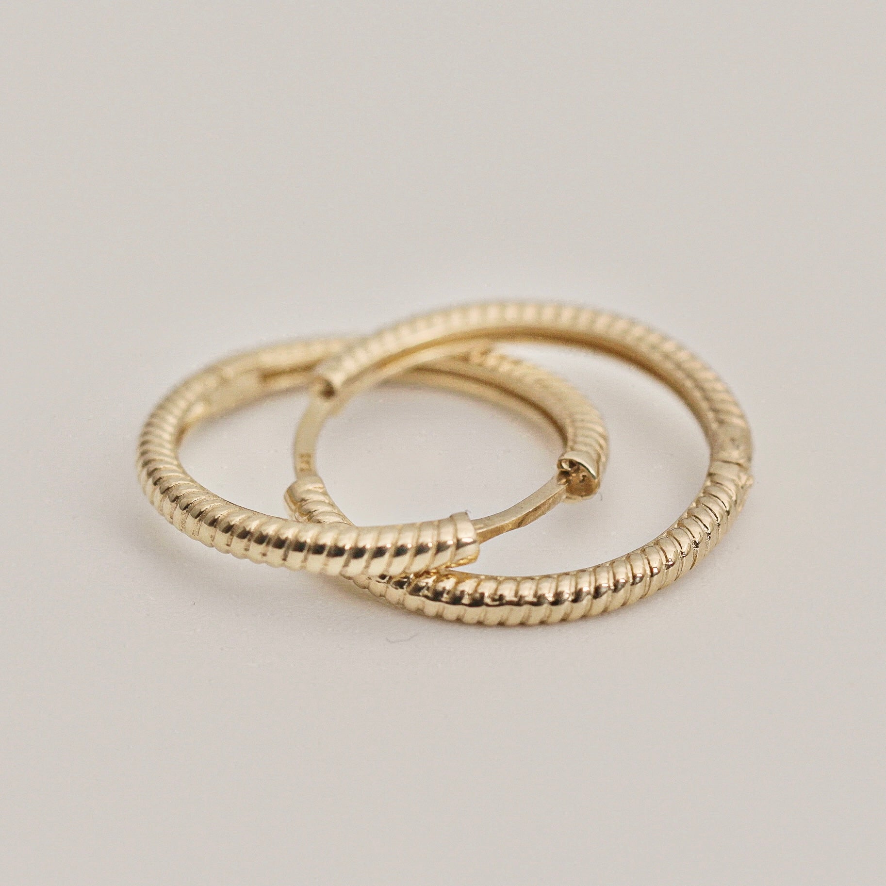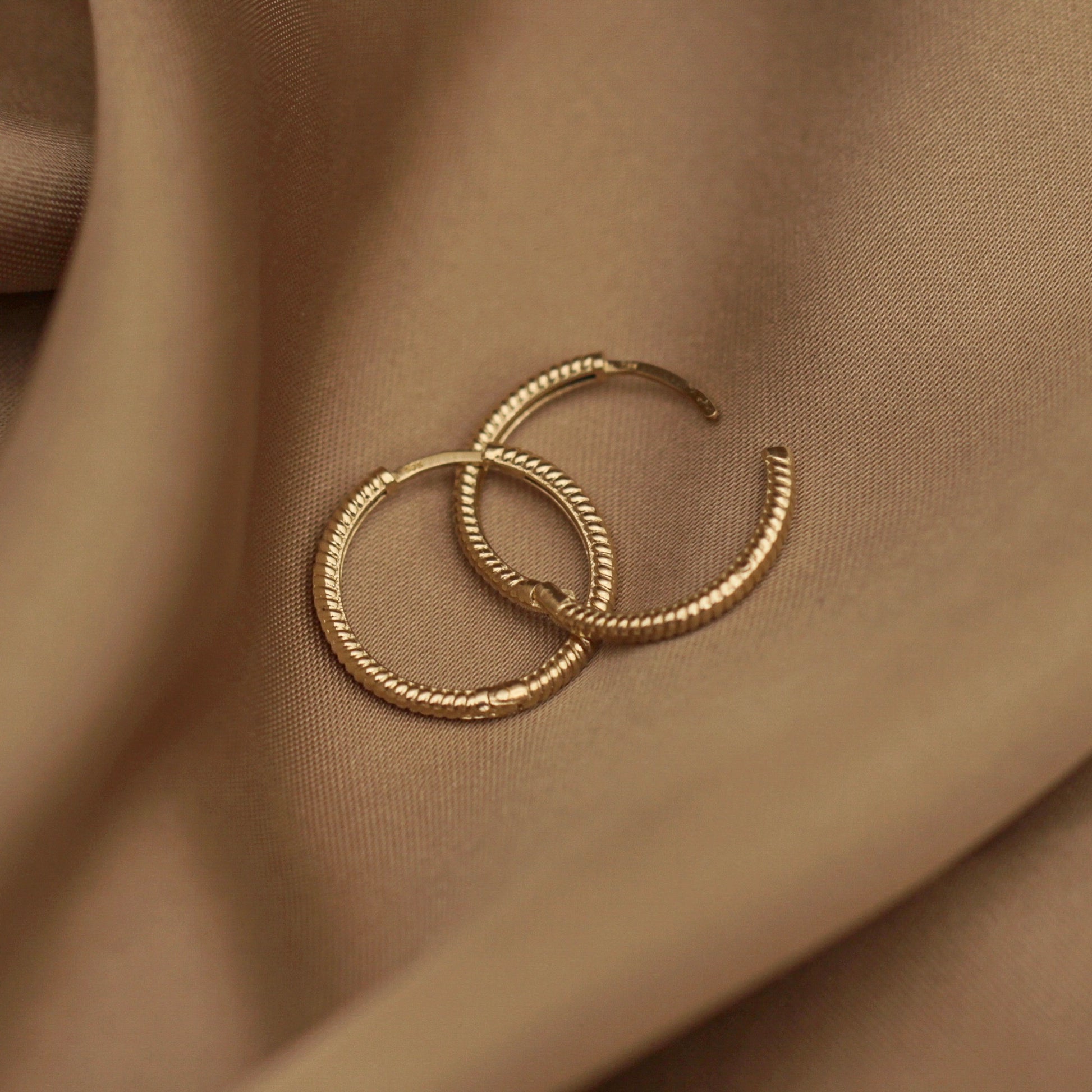Twisted in elegance, timeless in style. These 14k solid gold twisted hoop earrings are handcrafted with intricate detail, showcasing the perfect blend of modern design and classic sophistication. The gentle twist in the gold reflects light beautifully, adding a unique and luxurious touch to your look. Whether worn casually or for special occasions, these earrings bring a subtle twist of glamour to any outfit, embodying the enduring allure of fine craftsmanship and precious metal.