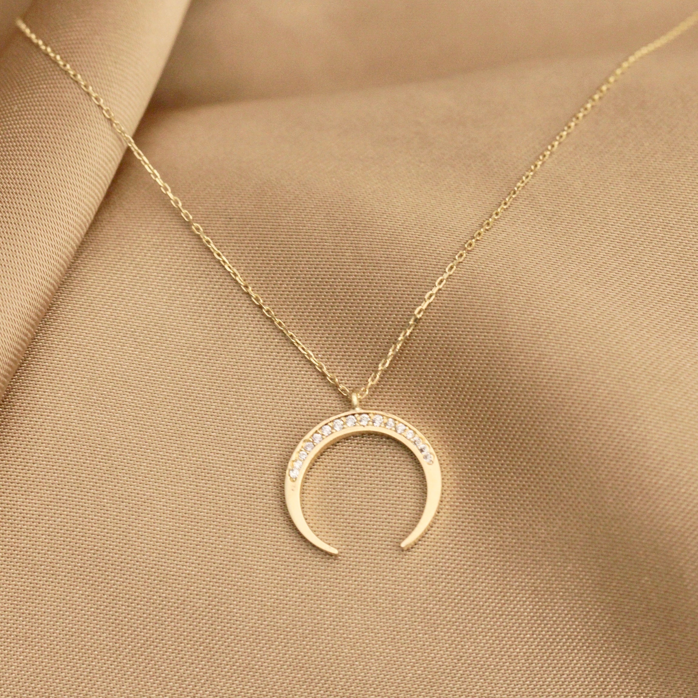 Eons ago, deep within the earth's crust, the raw crystals of these gemstones began to form. Each one a unique creation, shaped by the intense heat and pressure of their surroundings. Now, we've crafted them into a beautiful piece of jewelry for you to wear and cherish. This Little Crescent Pendant Necklace is the perfect way to add a touch of elegance to any outfit.