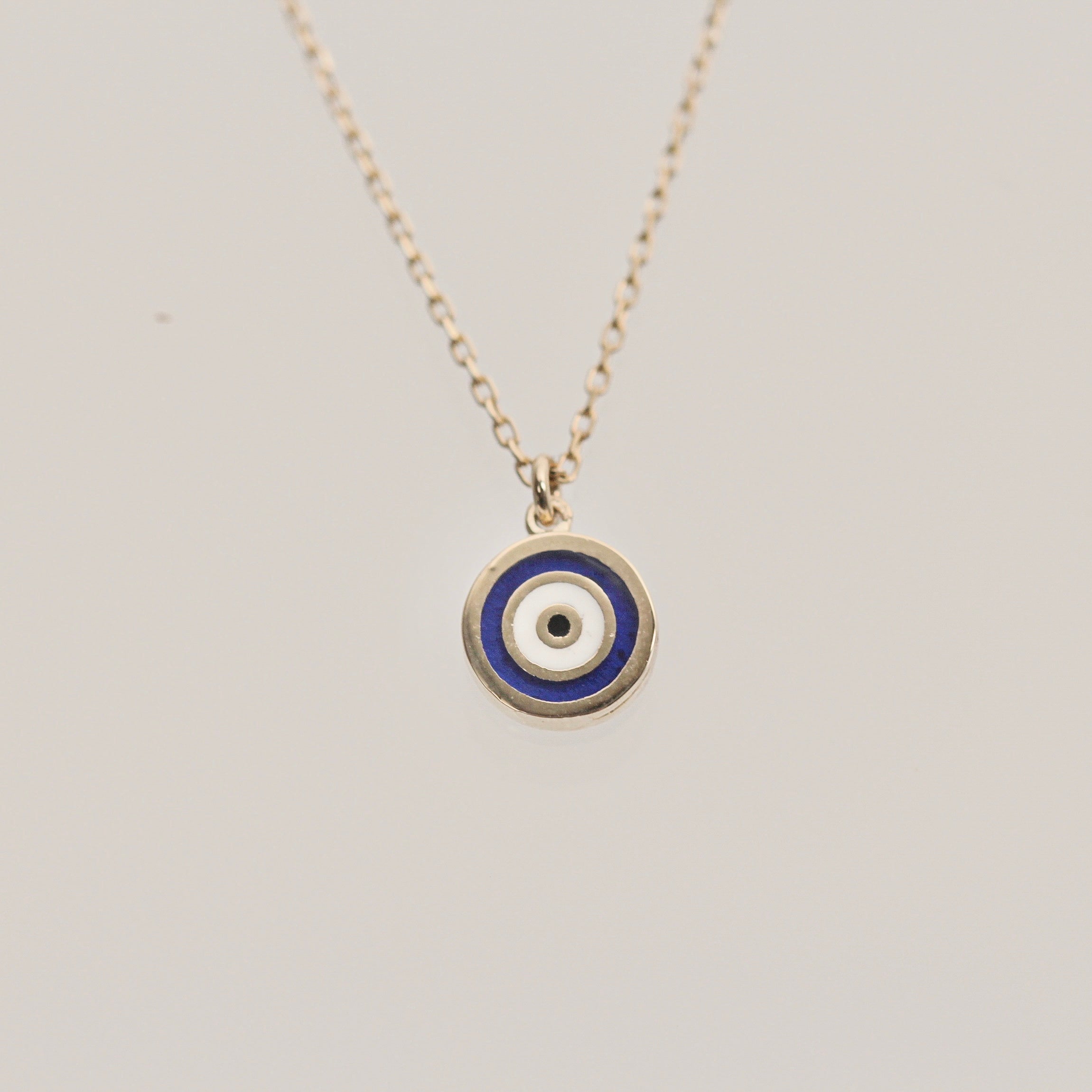 14K Solid Gold Double-Sided Evil Eye Necklace