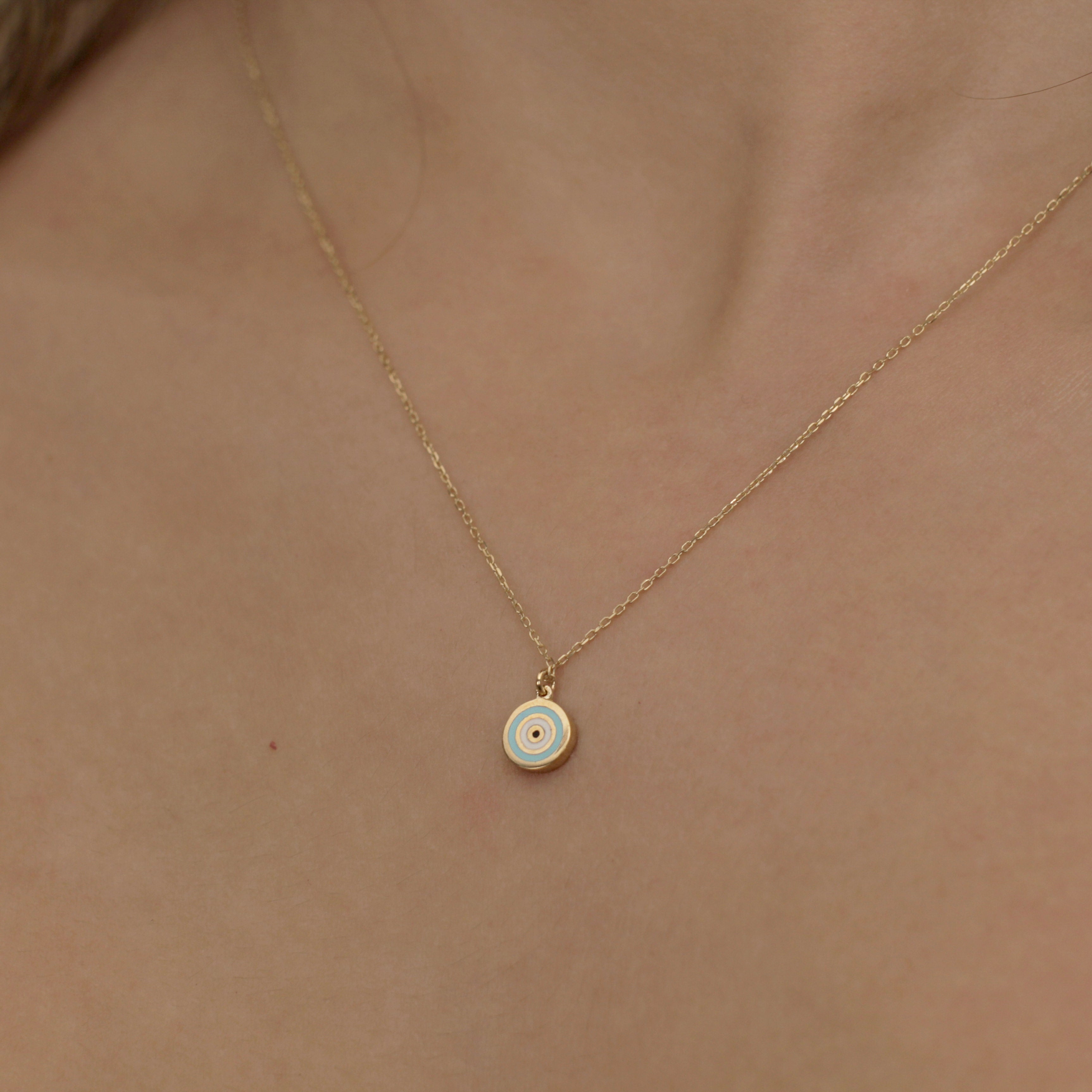 For centuries, the Evil Eye symbol has been recognized as a powerful talisman, believed to ward off negativity and bring good luck to its wearer. Originating from ancient Mediterranean cultures, the Evil Eye is a powerful symbol of protection and has become a timeless piece of jewelry worn by women all over the world. This double-sided Evil Eye pendant necklace is the perfect way to keep protection and positive energy close to you.