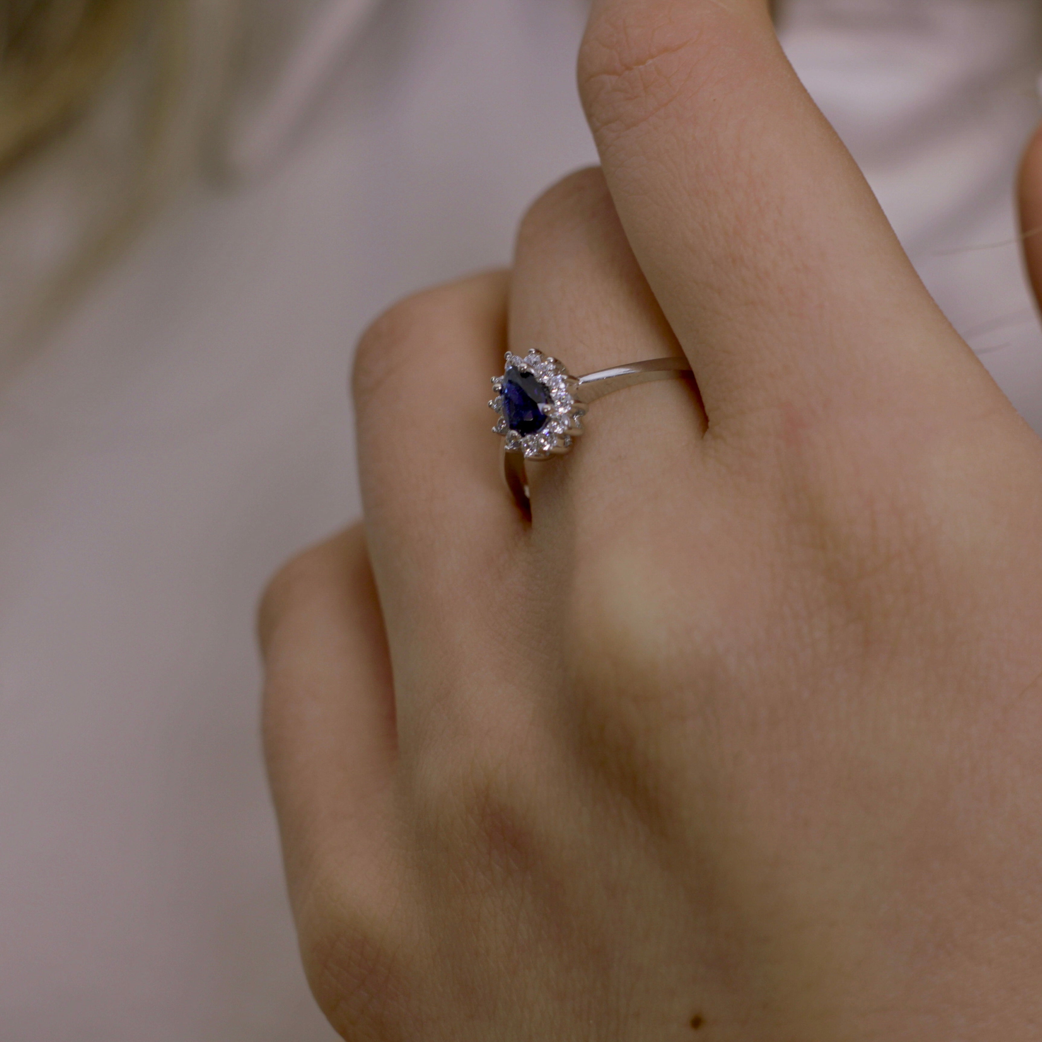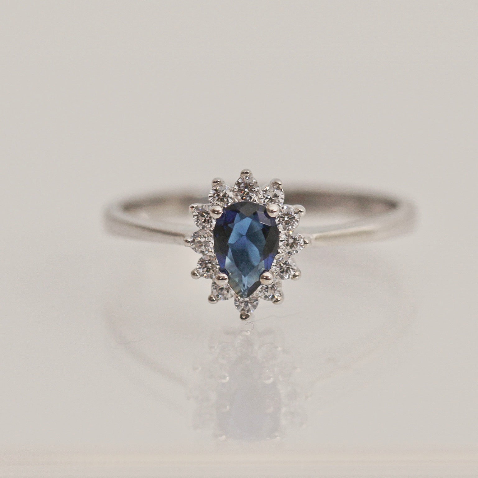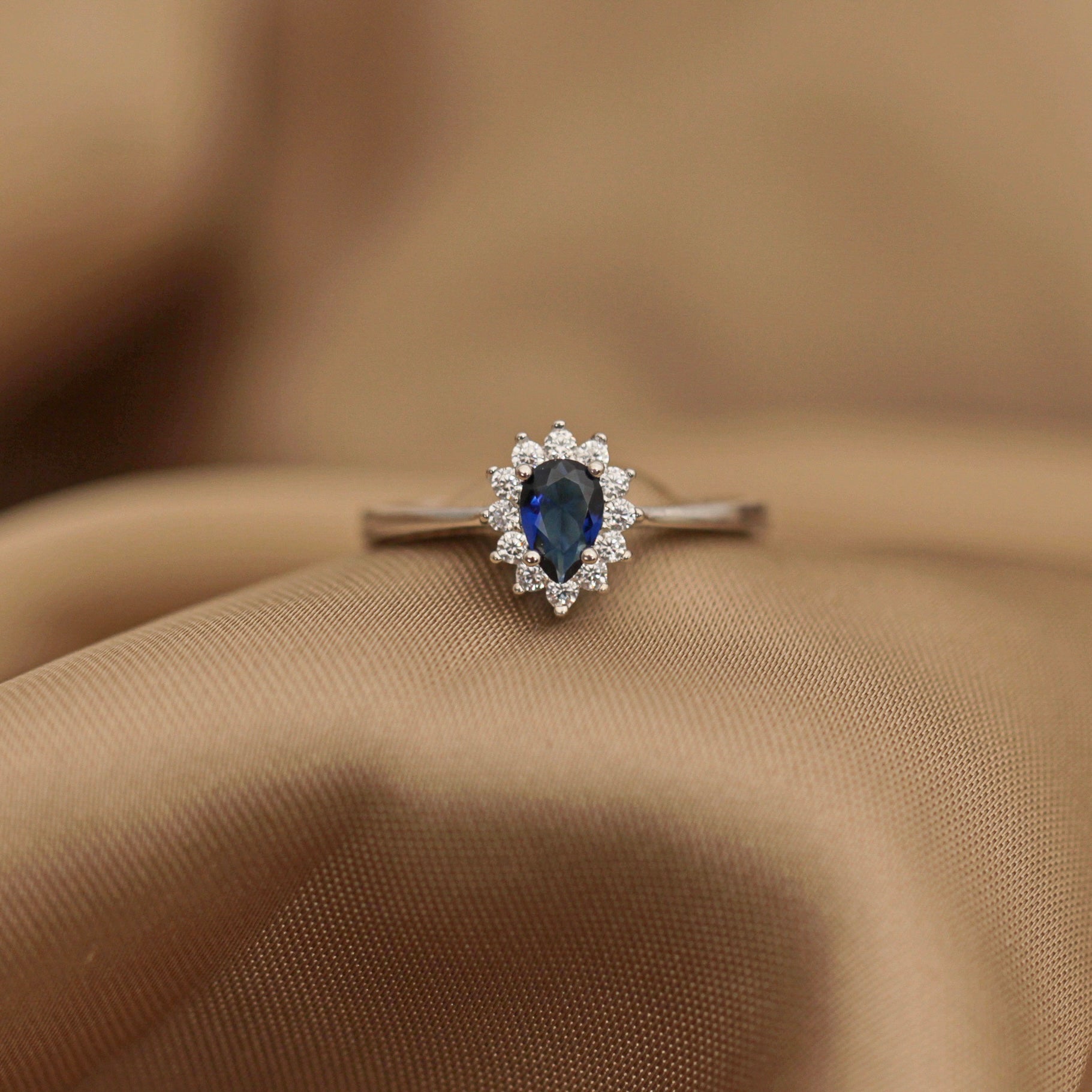 14K Solid Gold Drop Cut Entourage Blue Ring