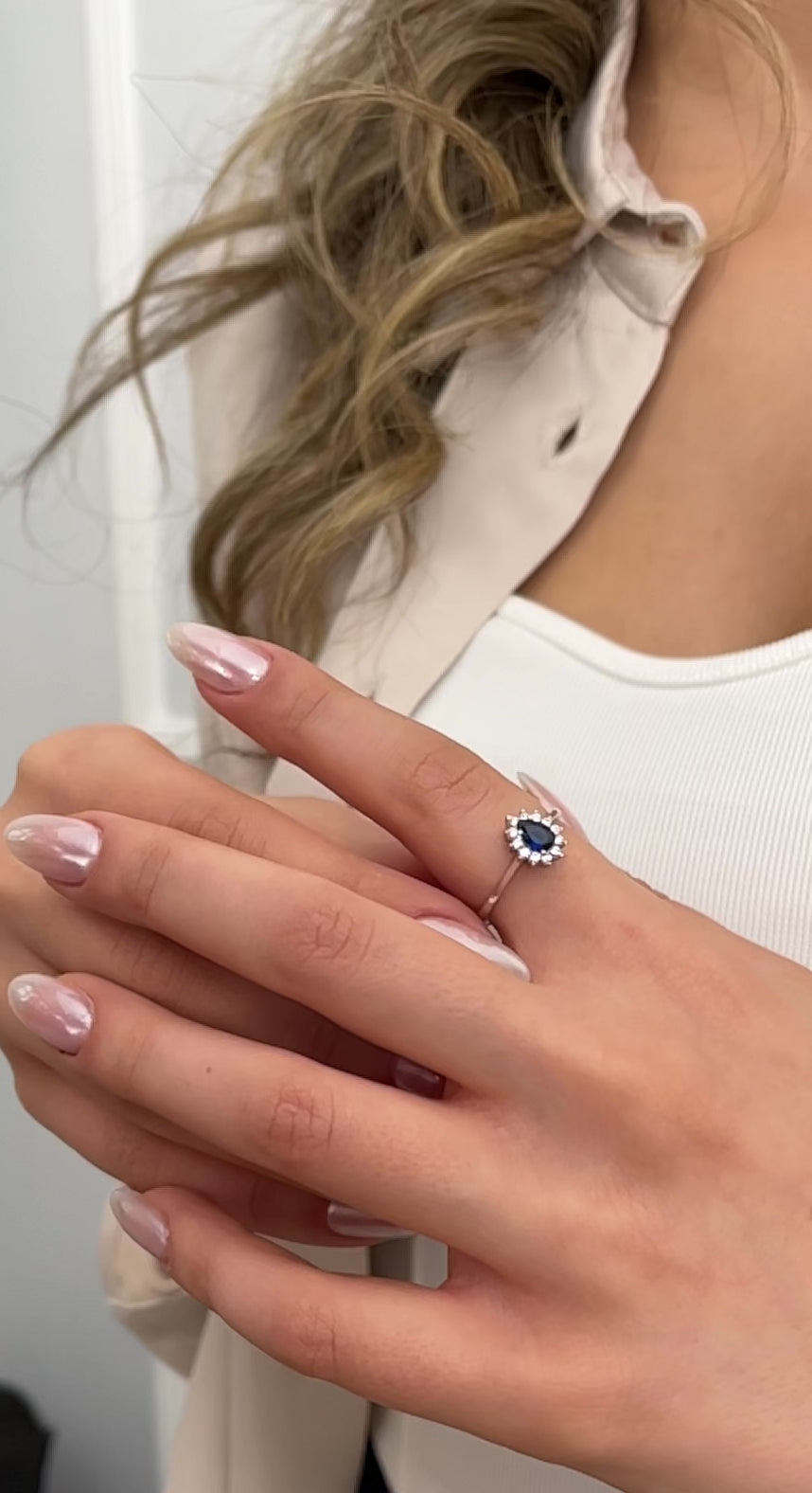 Discover the timeless beauty of the Drop Cut Entourage Blue Ring. This piece is a true masterpiece, steeped in mystery and surrounded by legends. This ring will make you feel like royalty, a true gem among gems. With its exquisite oval blue stone, the Teardrop Entourage Ring is sure to make a lasting impression. Crafted with 14K Solid Gold, this ring is available in your choice of yellow, pink or white gold, to match your style and elegance.