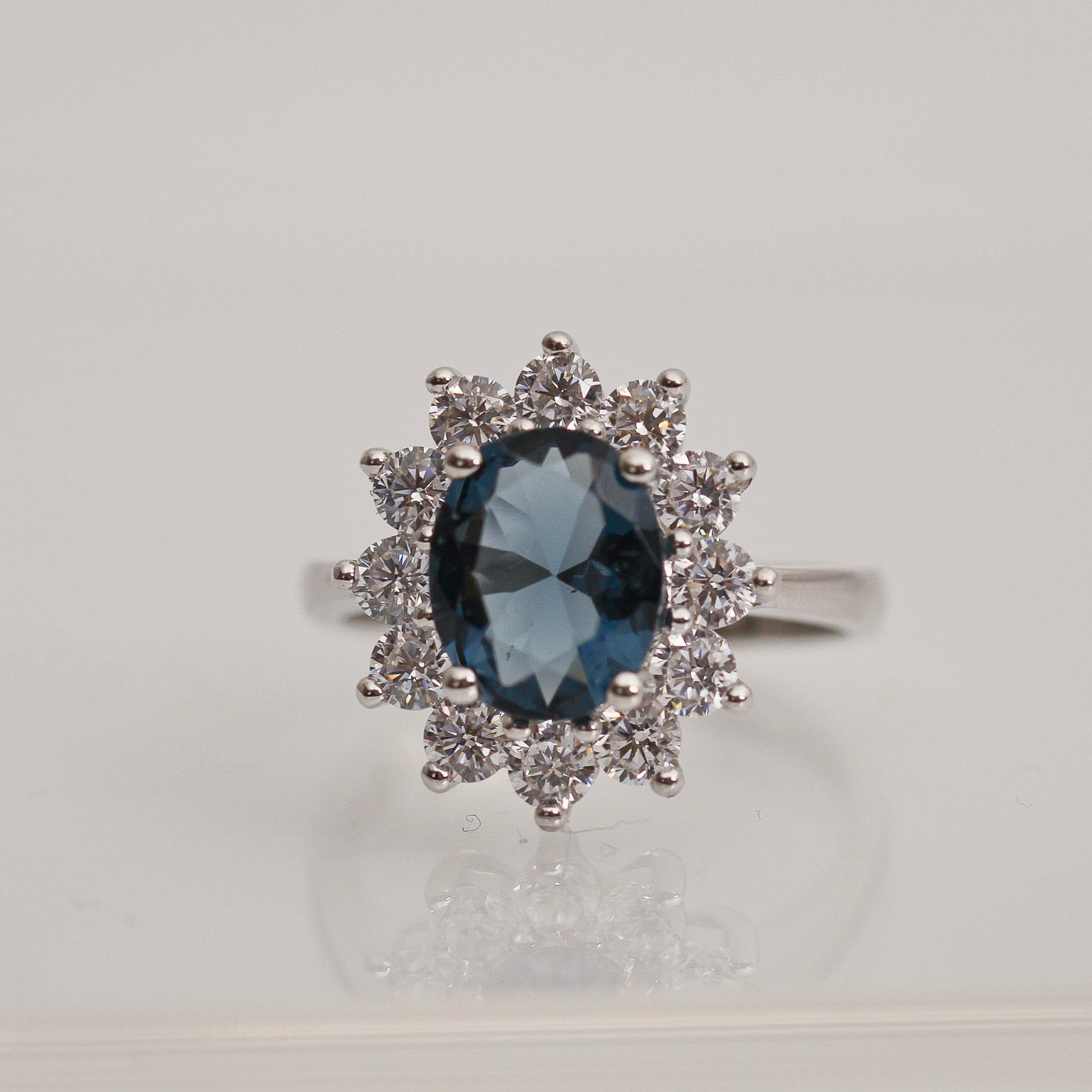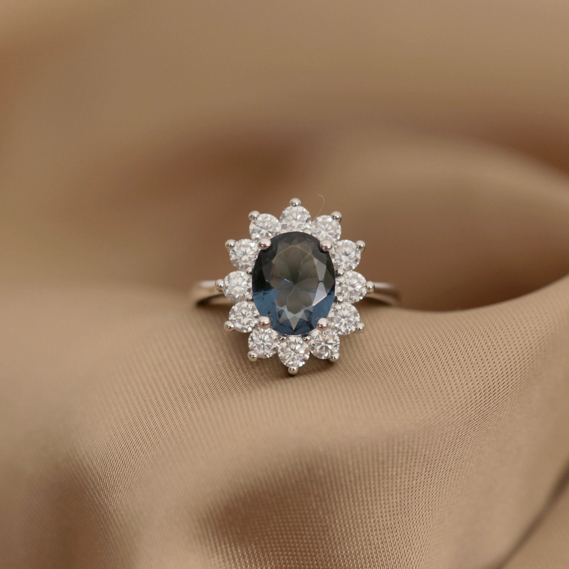 Discover the timeless beauty of the Big Oval Entourage Blue Ring. This piece is a true masterpiece, steeped in mystery and surrounded by legends. This ring will make you feel like royalty, a true gem among gems. With its exquisite oval blue stone, the Oval Entourage Ring is sure to make a lasting impression. Crafted with 14K Solid Gold, this ring is available in your choice of yellow, pink or white gold, to match your style and elegance.