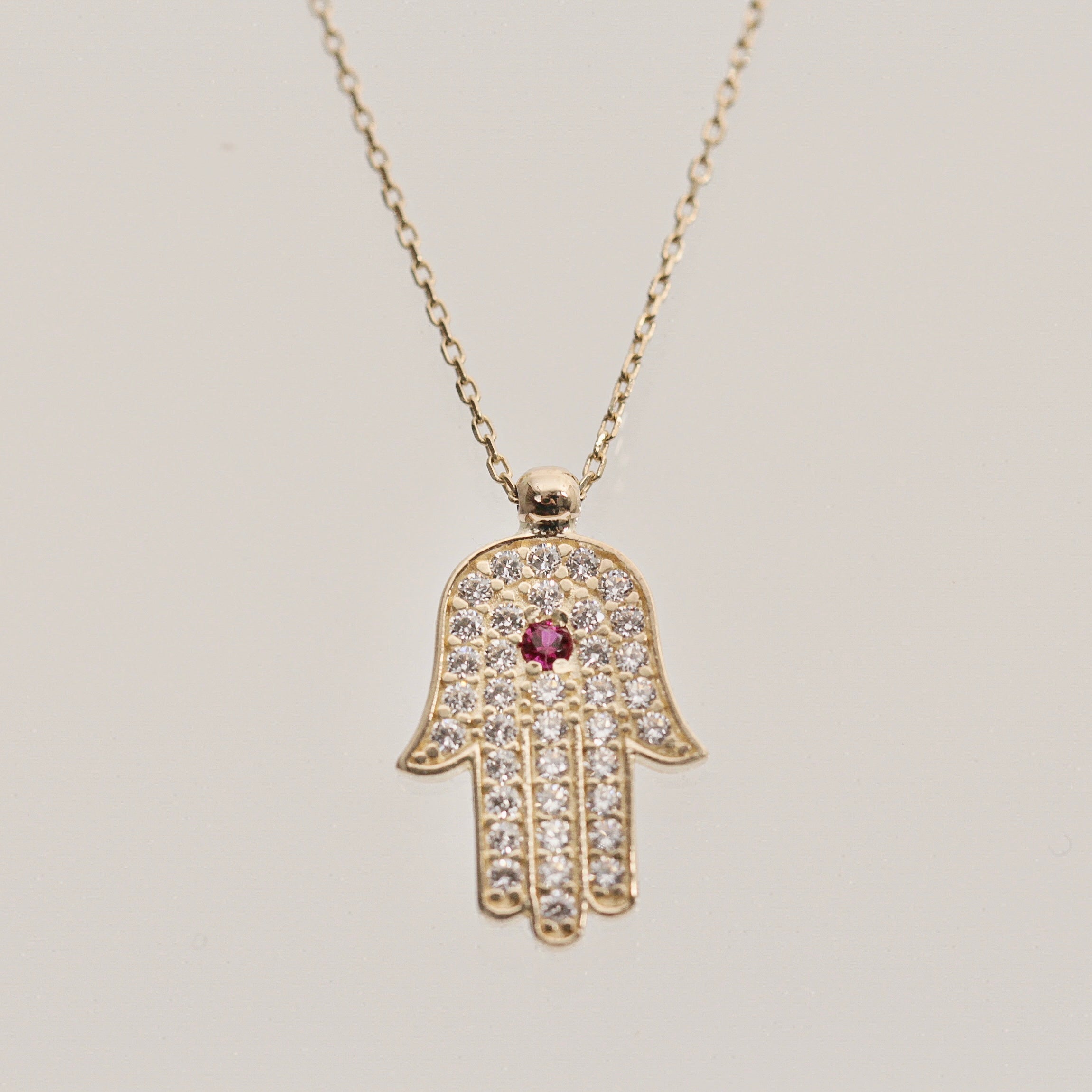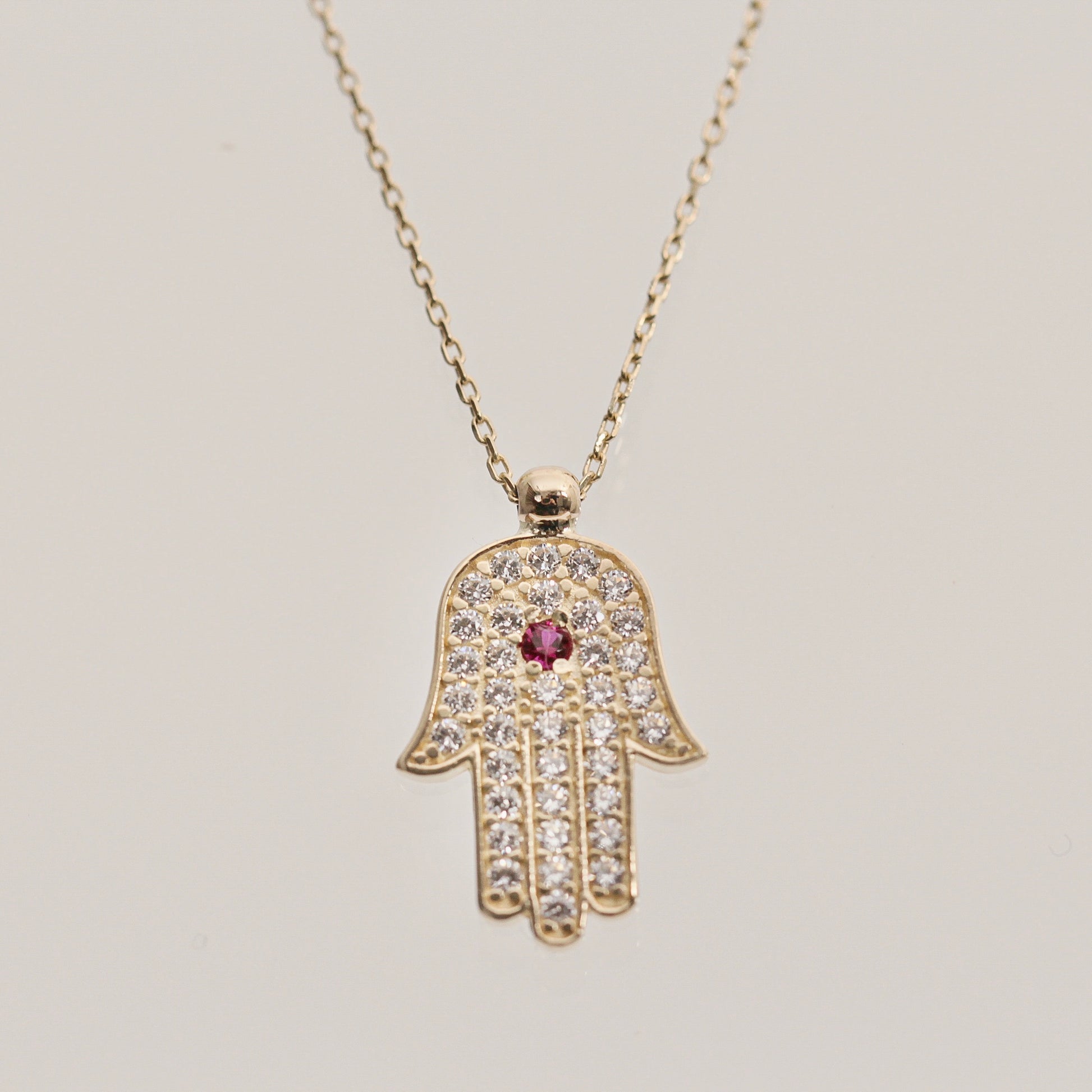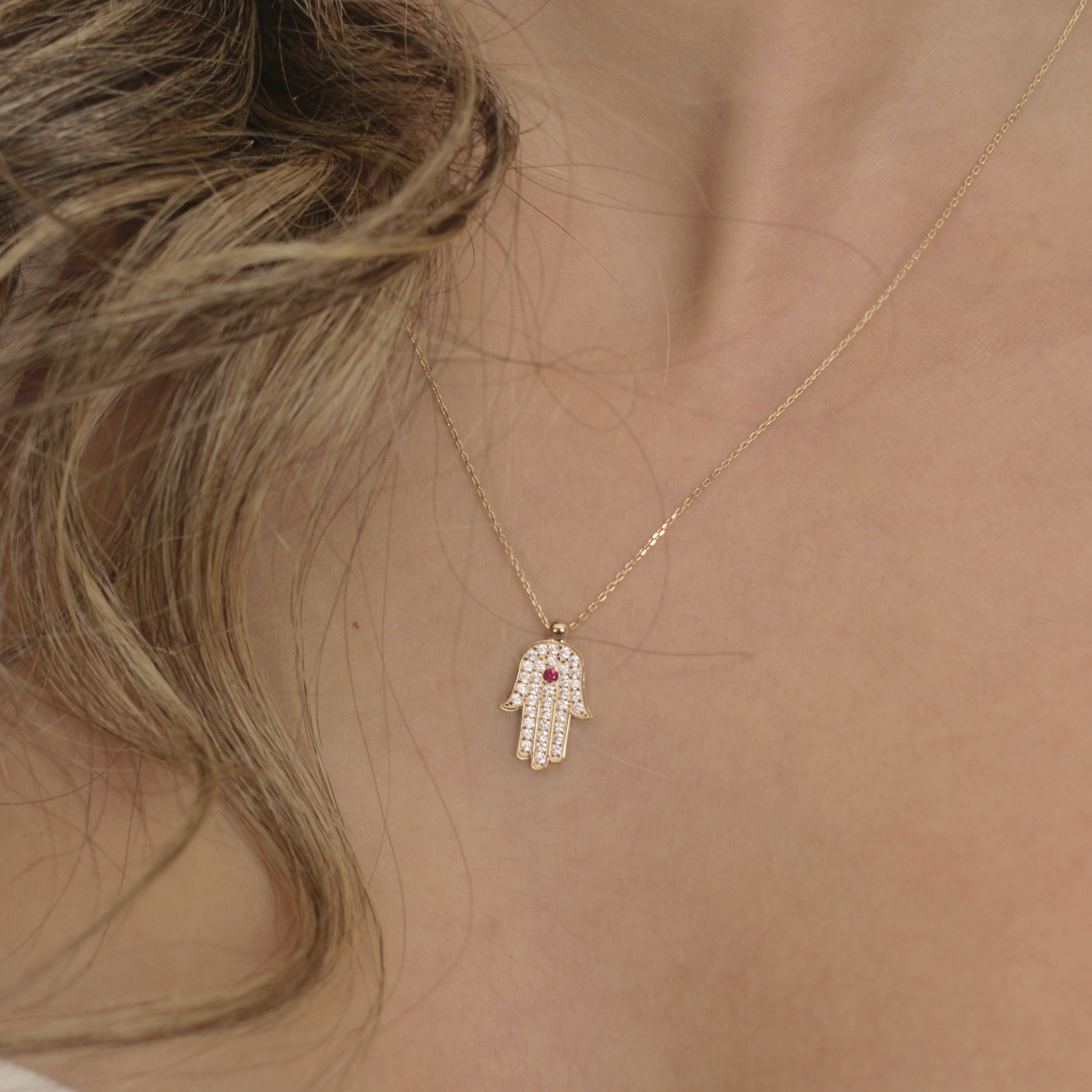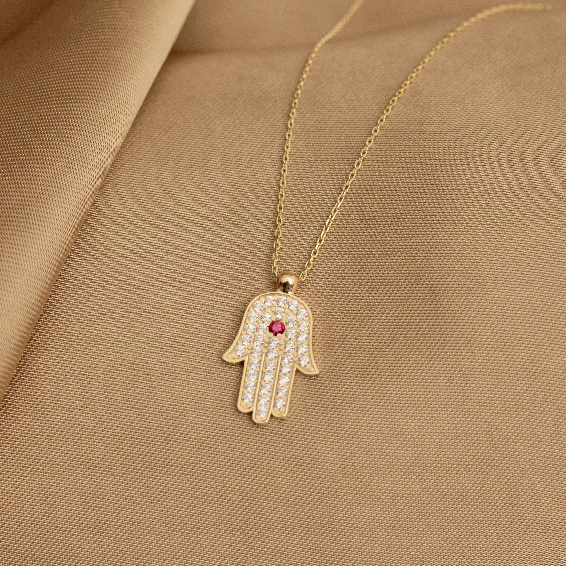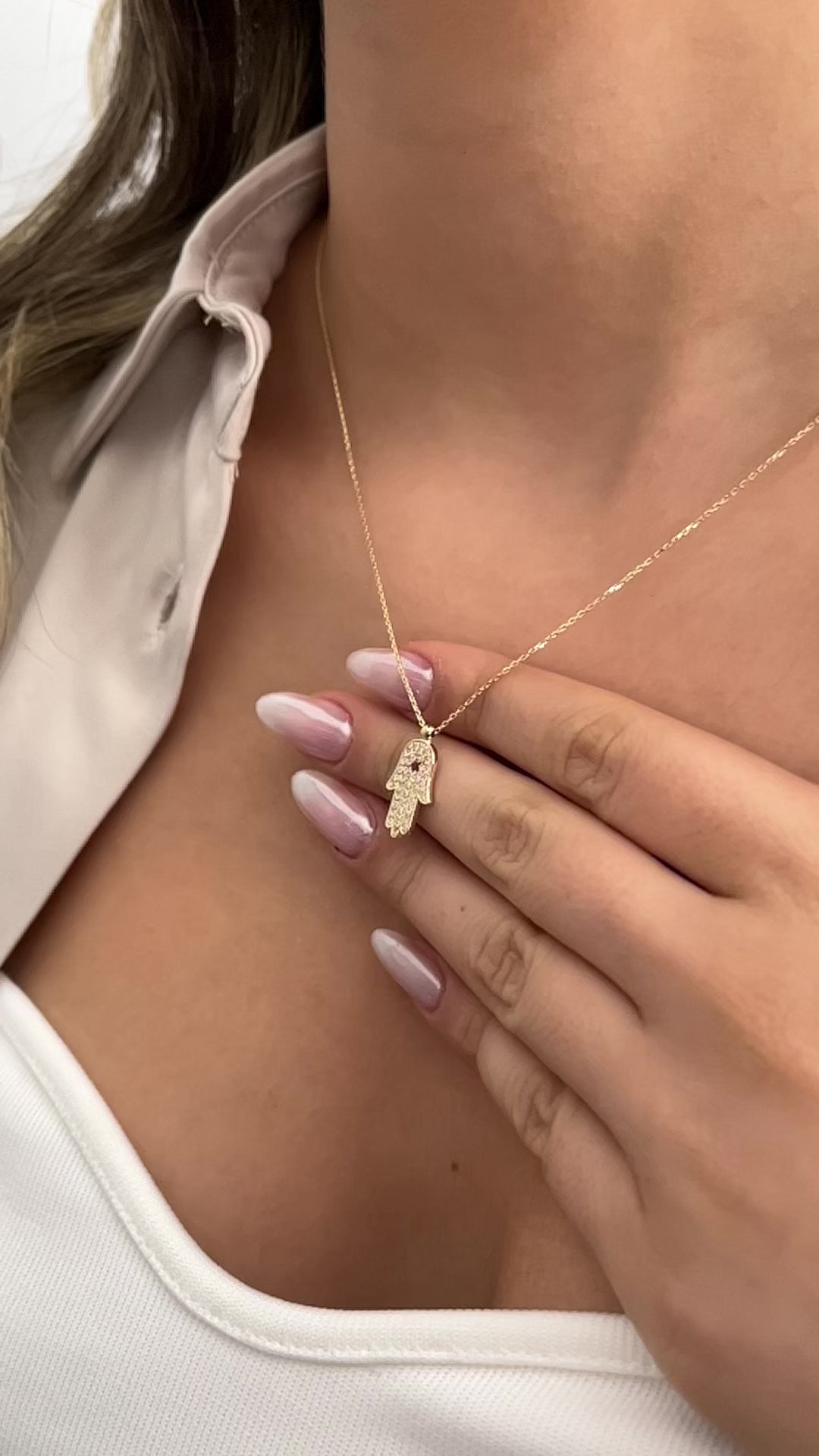 14K Solid Gold Hamsa Hand of Fatima Necklace