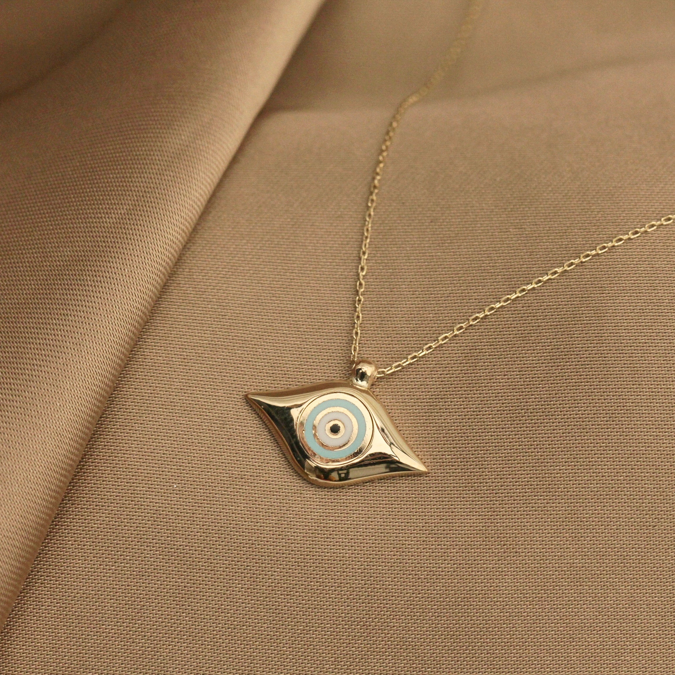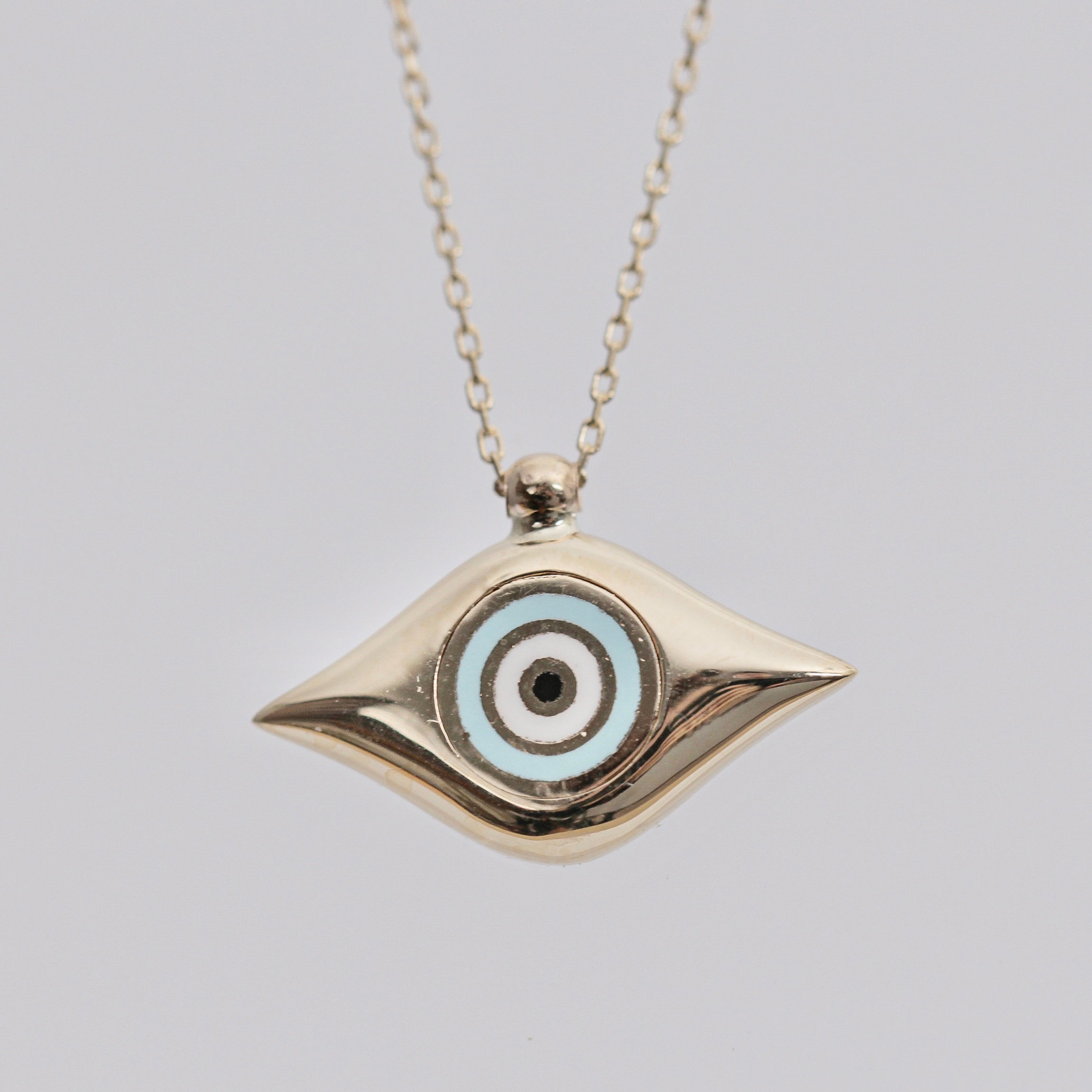 14K Solid Gold Light Blue Evil Eye Necklace
