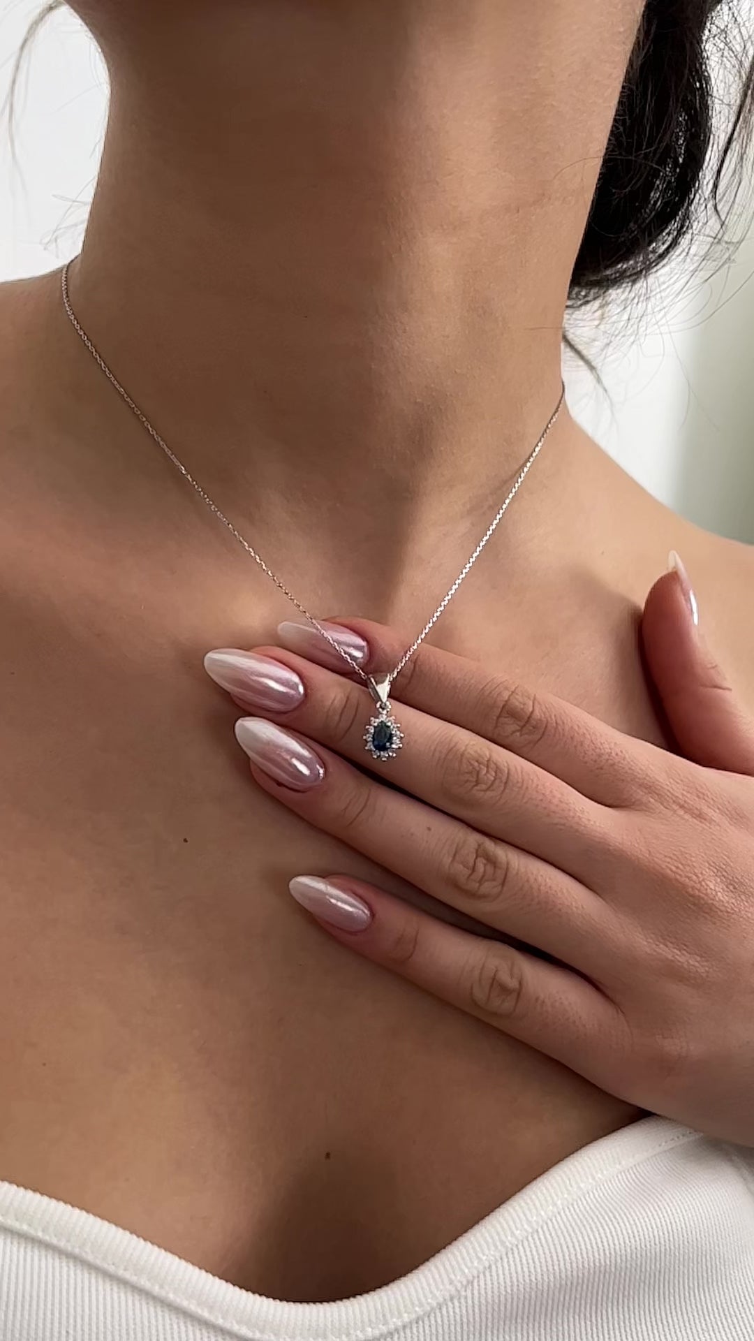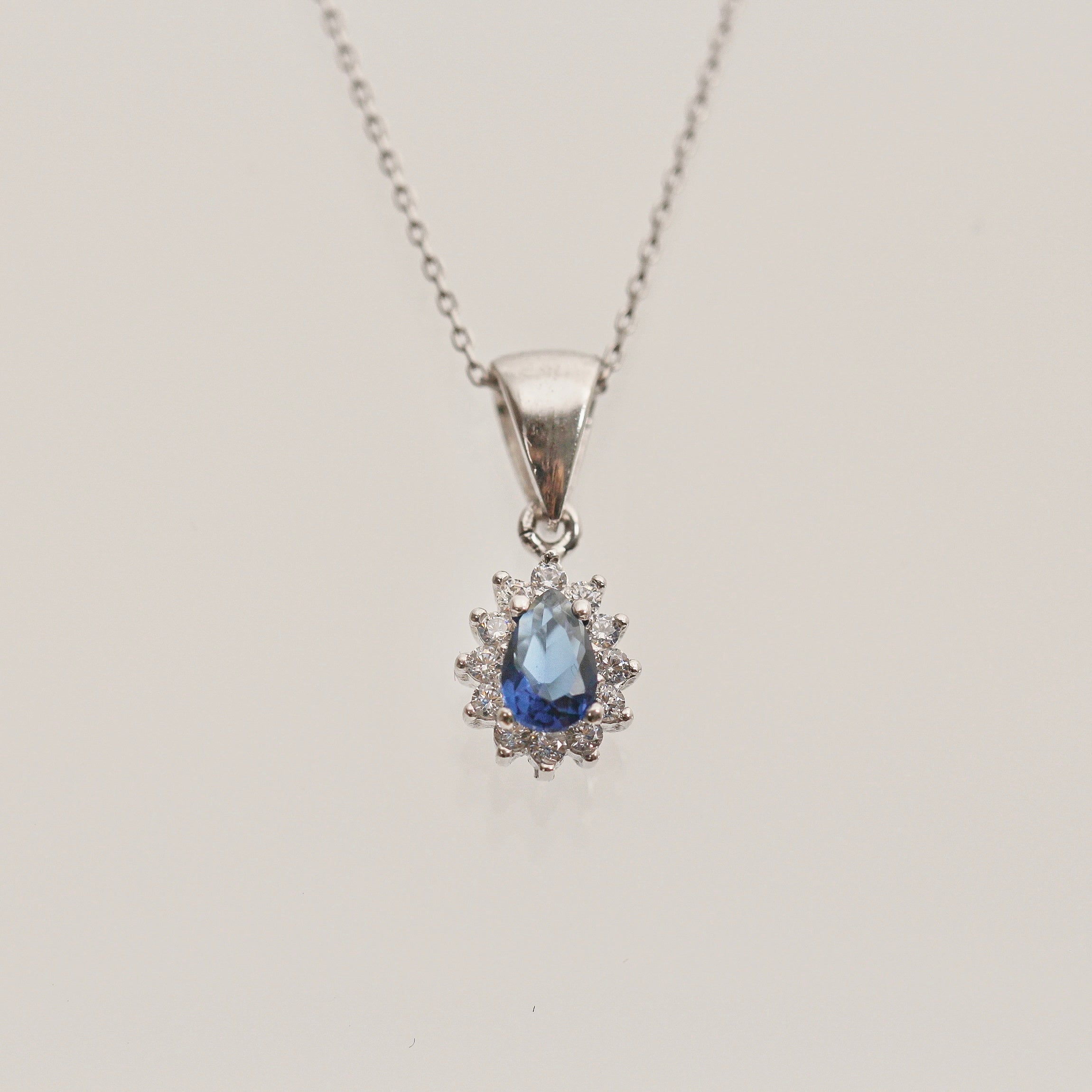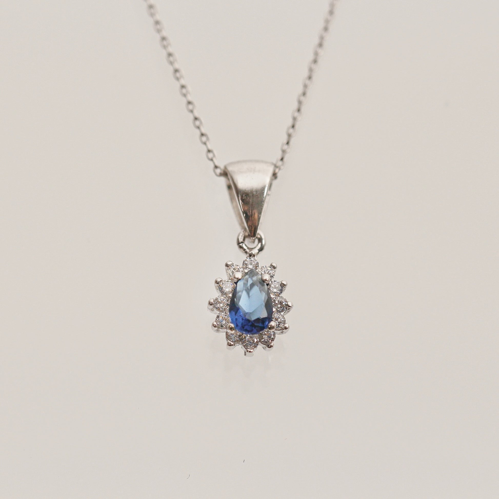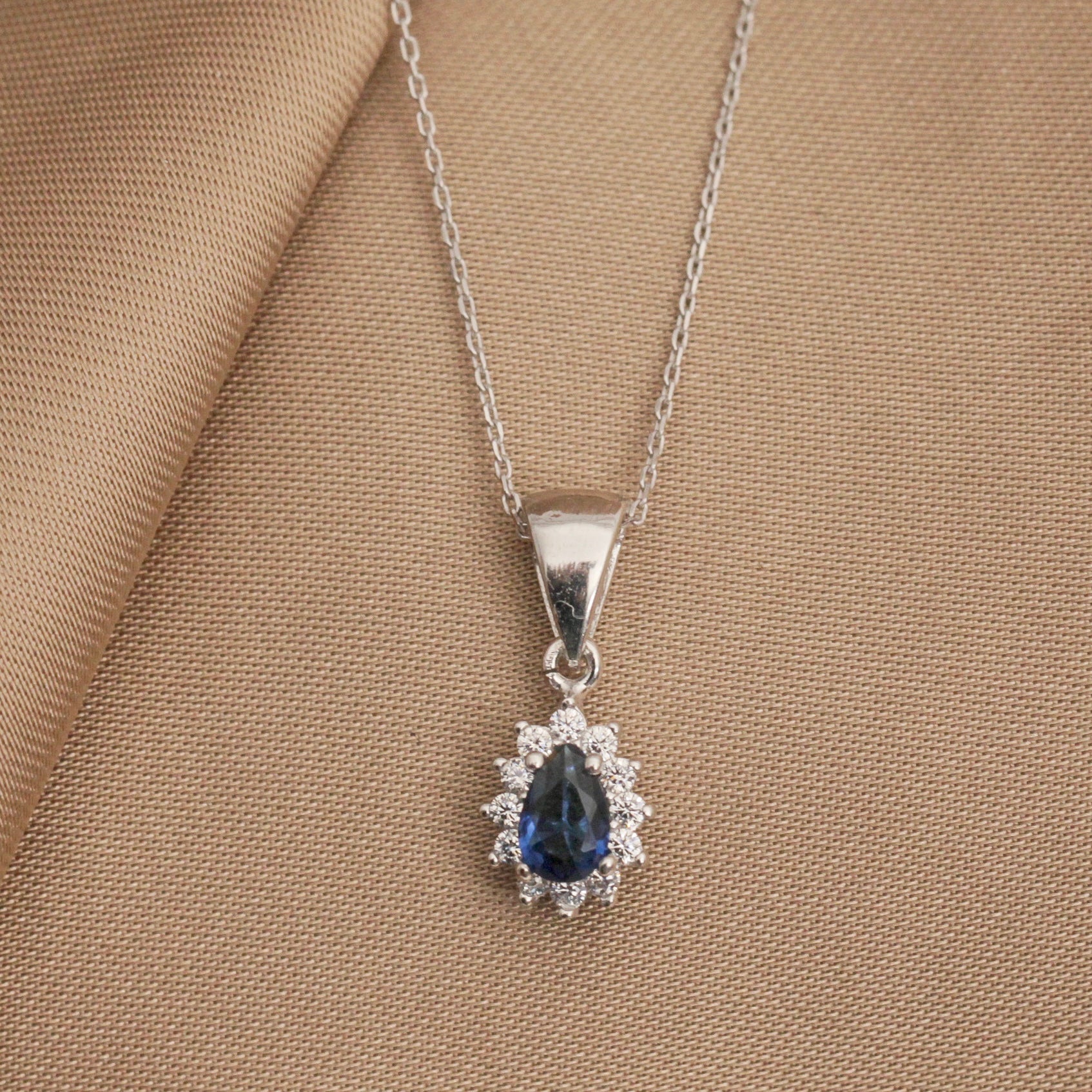 14K Solid Gold Minimalist Drop Cut Sapphire Necklace