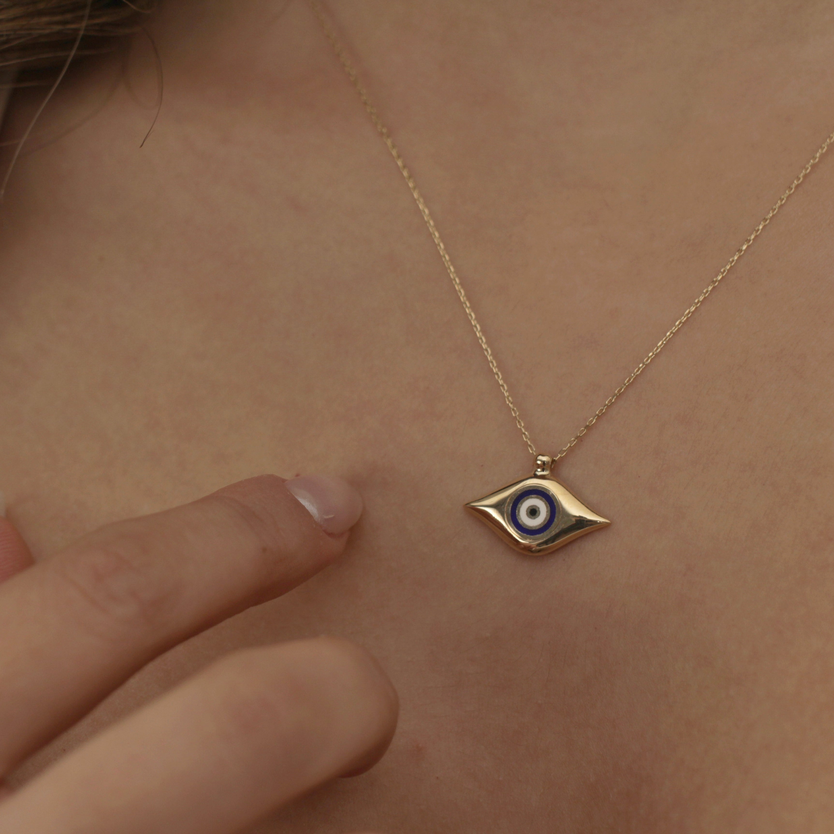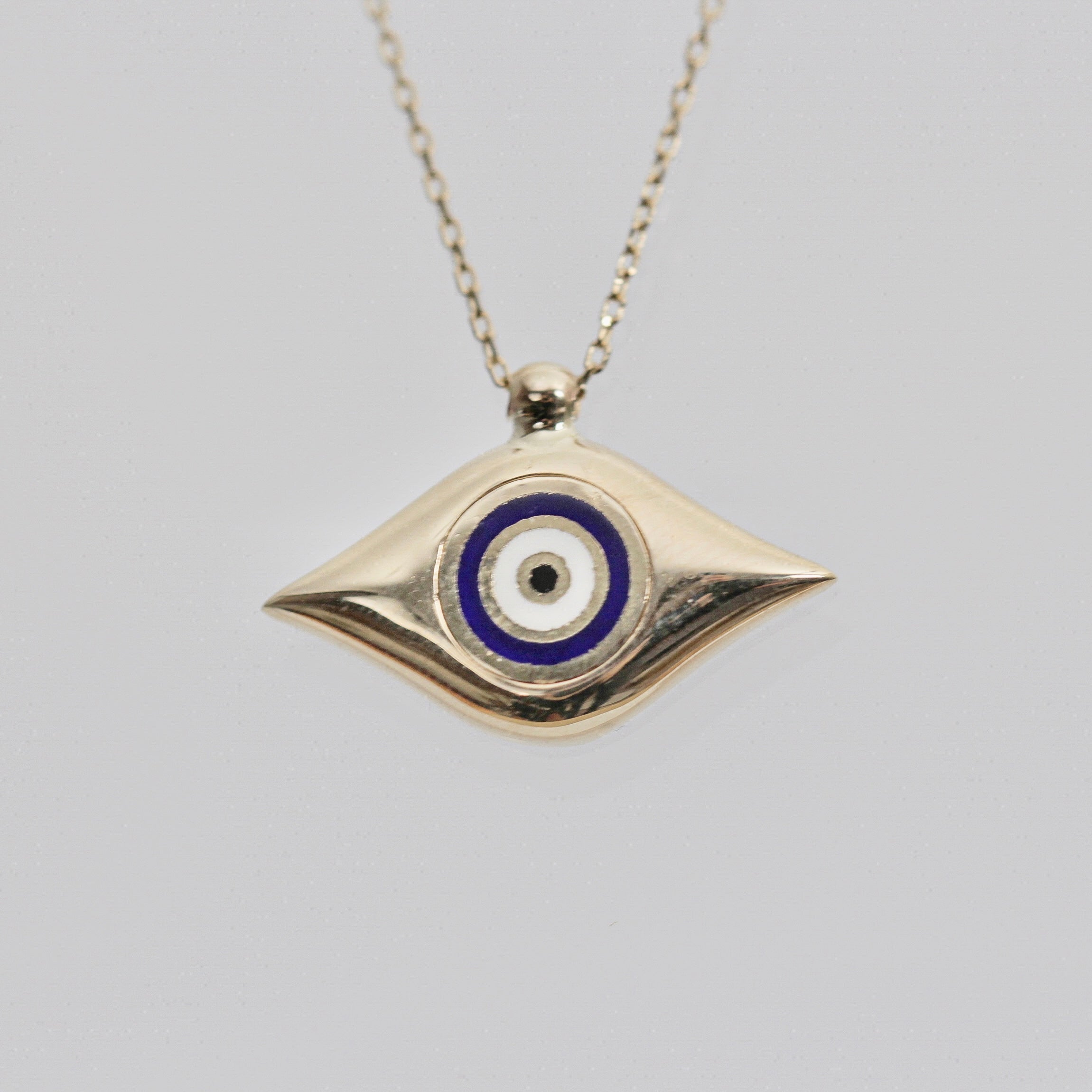 The Evil Eye pendant necklace is an ancient symbol of protection and luck, believed to ward off harm and bring good fortune. This exquisite pendant in 14k solid gold, featuring a round cut stone, is the perfect way to bring some extra luck into your life.