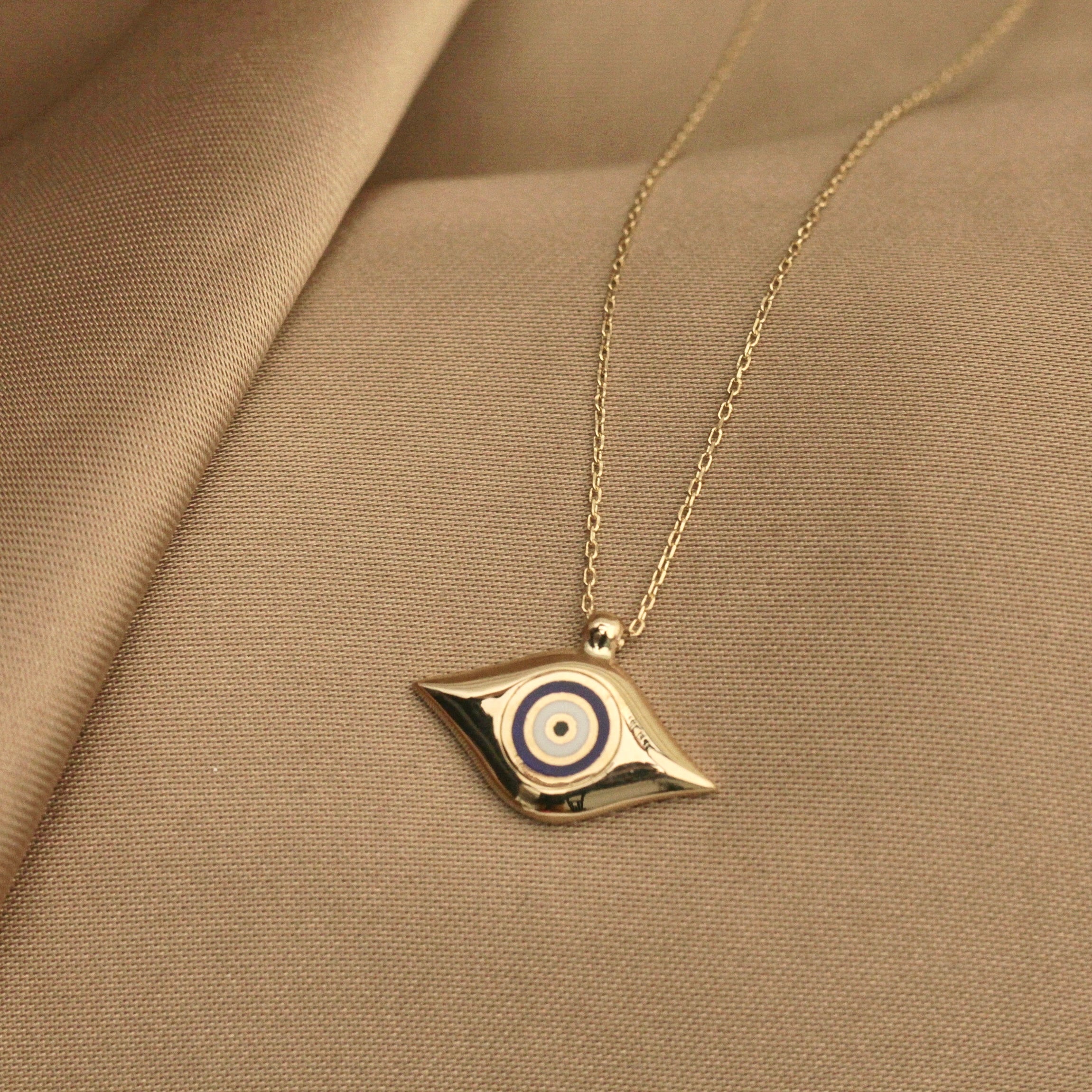 14K Solid Gold Navy Blue Evil Eye Necklace