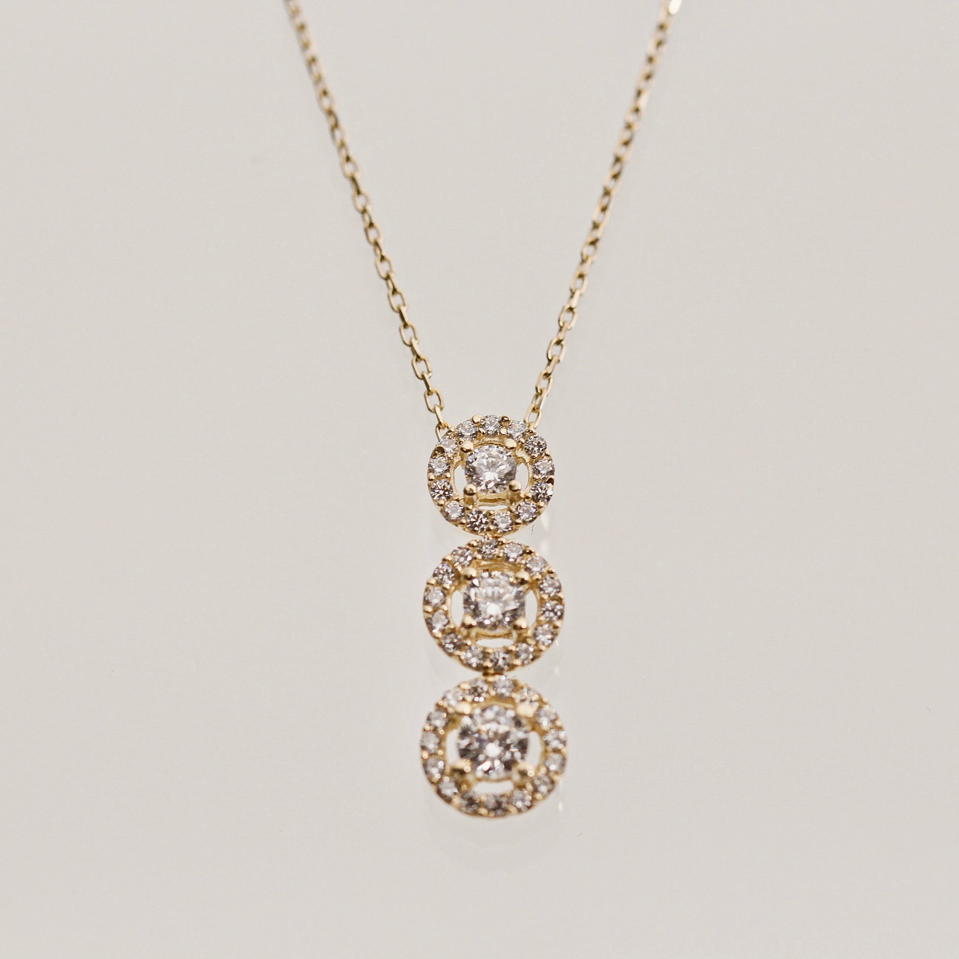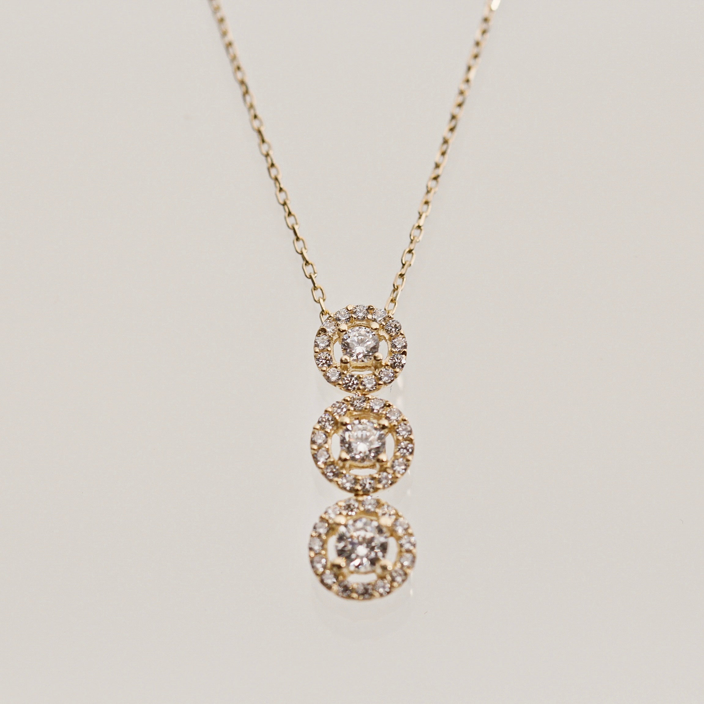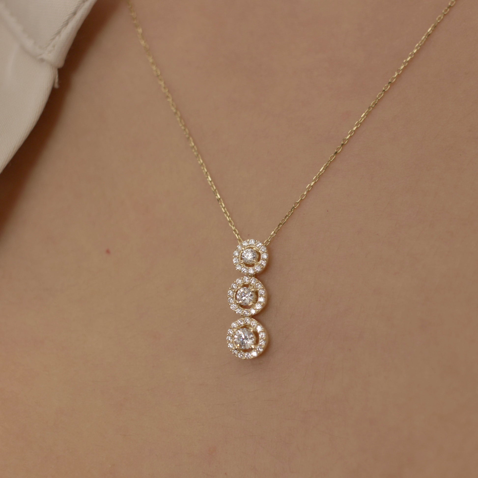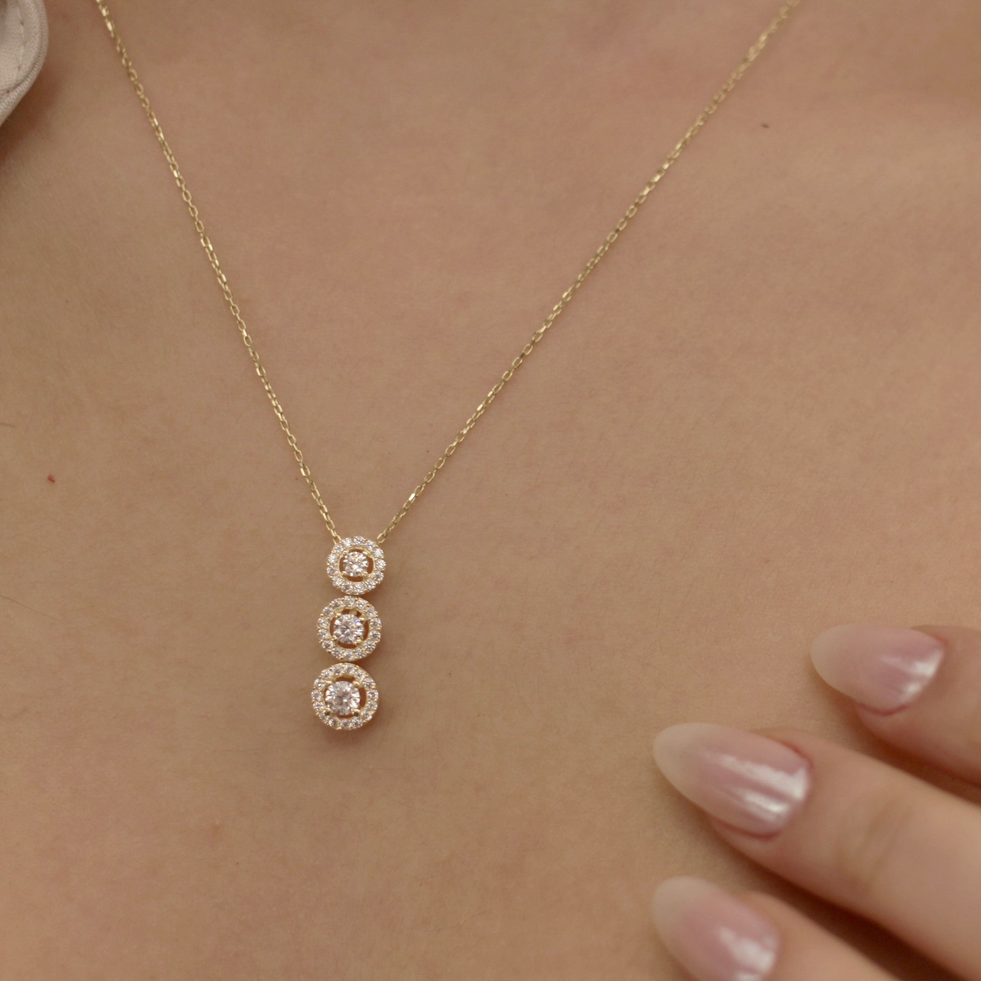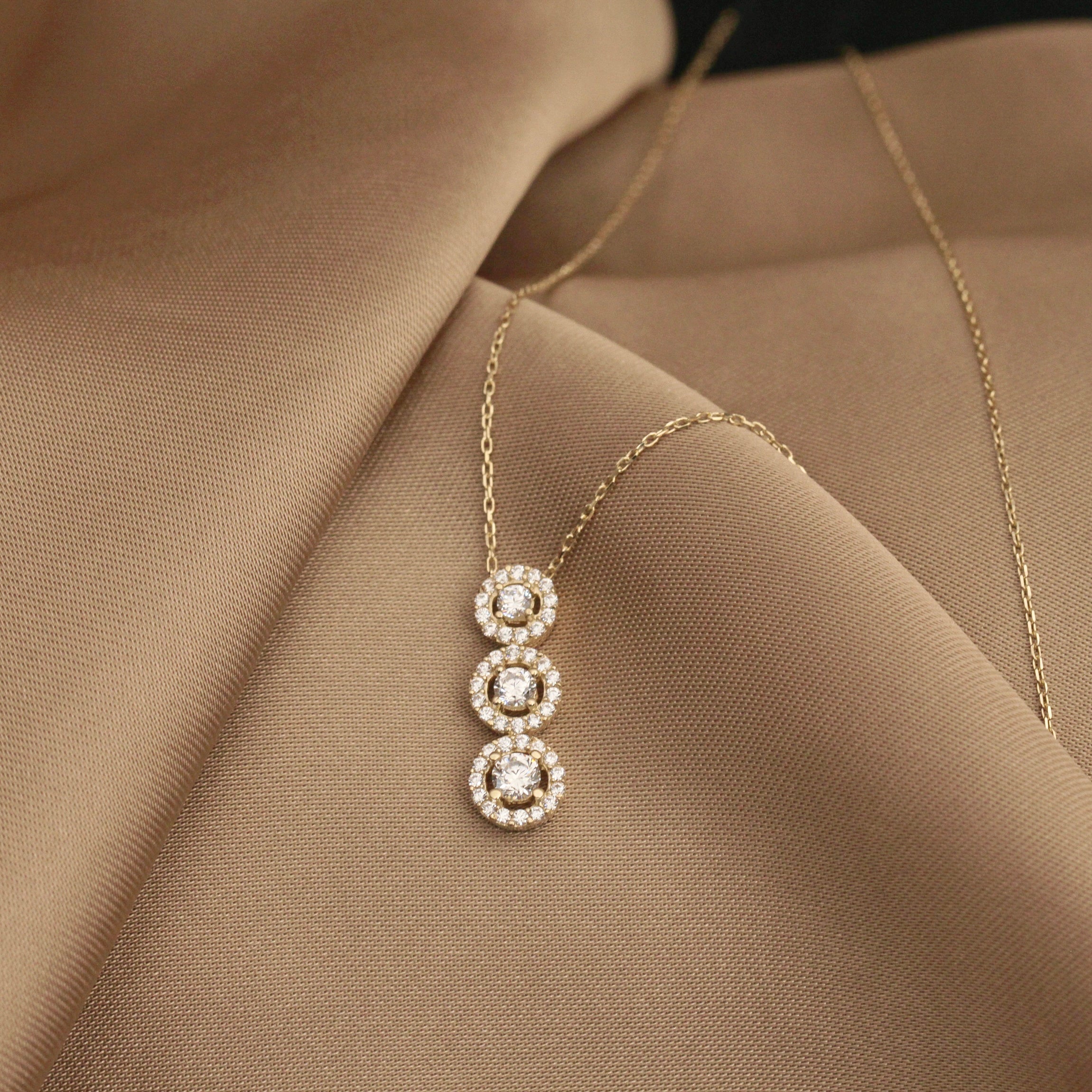 14K Solid Gold Olympic Triple Solitaire Necklace