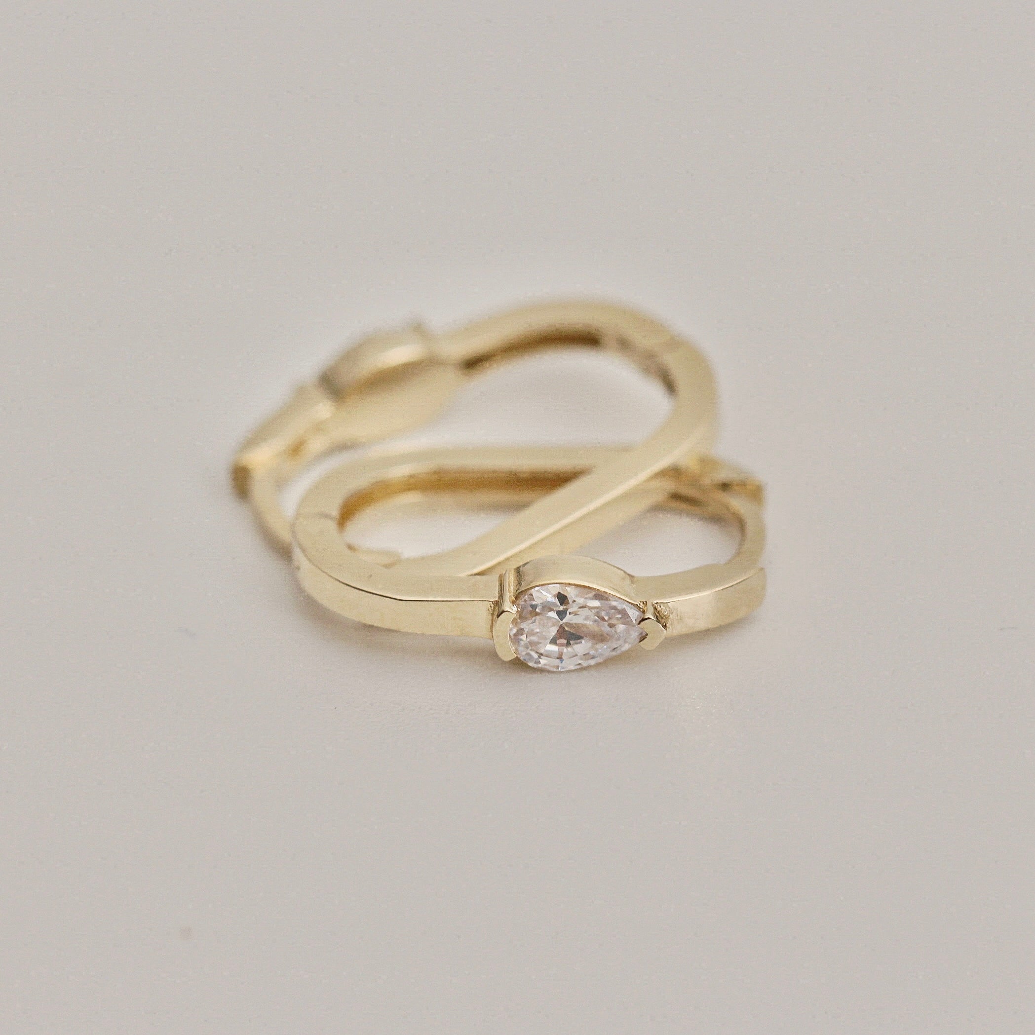 Add a touch of regal elegance to your style with our Teardrop Hoop Earrings. Crafted from 14k solid gold, these earrings feature three sparkling stones that exude luxury with every glance. Choose from 14k yellow, rose, or white gold to bring a sophisticated touch to your wardrobe.