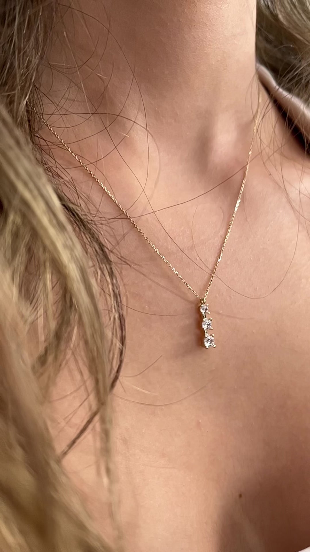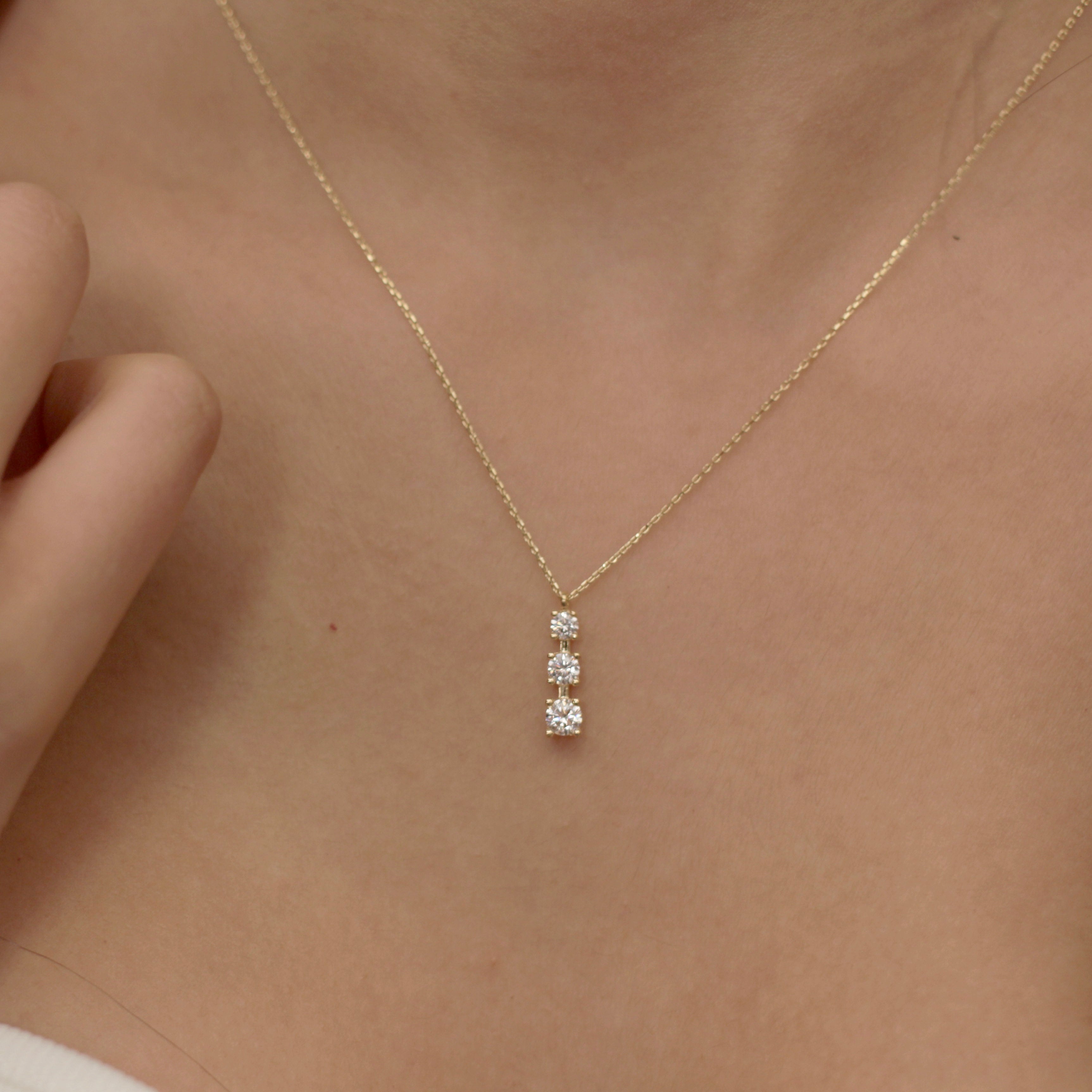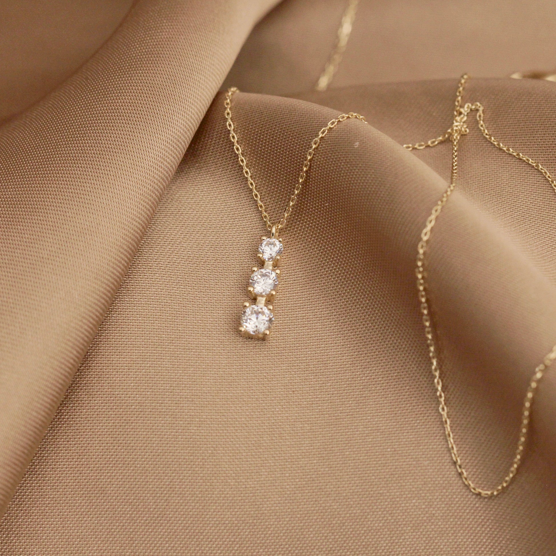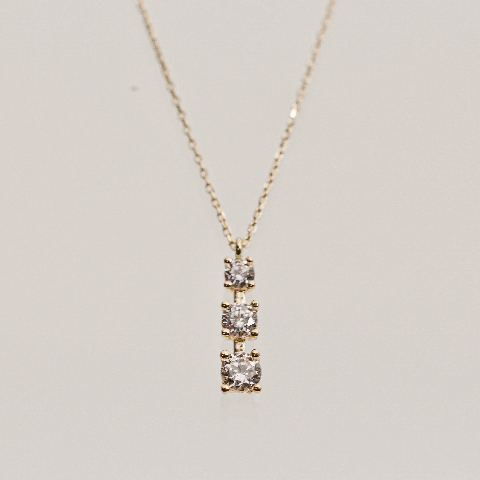 14K Solid Gold Triple Solitaire Necklace