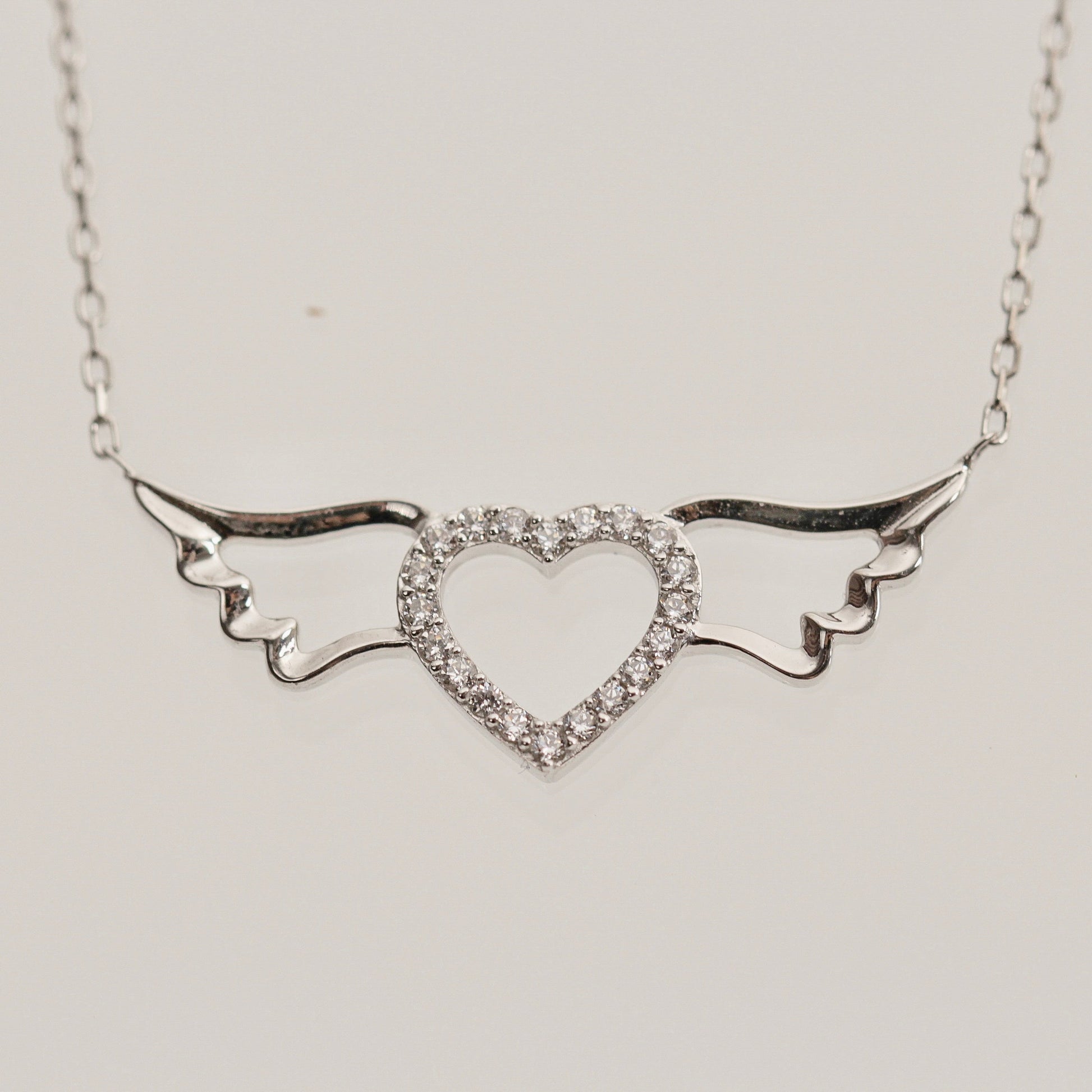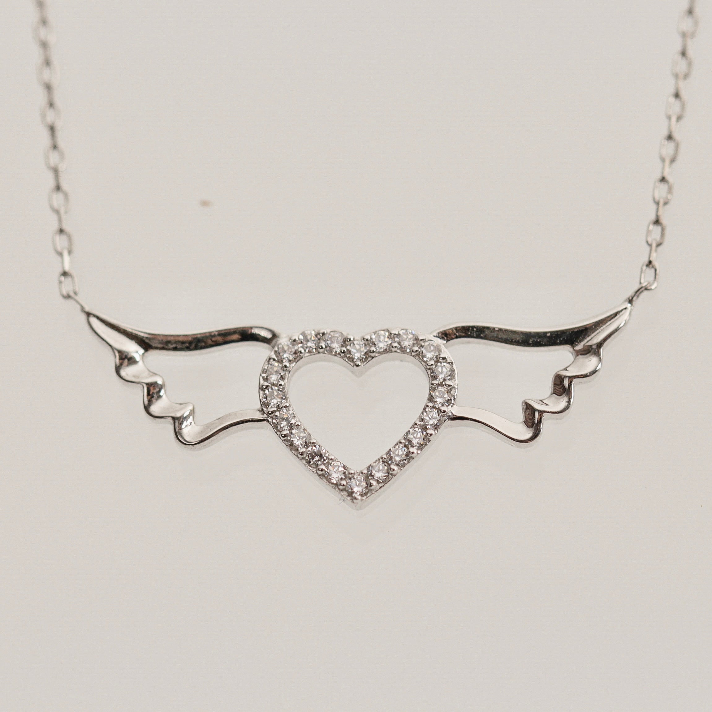 Angel wings, a symbol of grace and protection, have been revered throughout history. Our 925 Sterling Silver angel winged heart pendant necklace captures that timeless beauty with its stunning round cut gemstones. Available in yellow, rose, or white, this necklace is the perfect way to keep a piece of that mystical beauty close to your heart.
