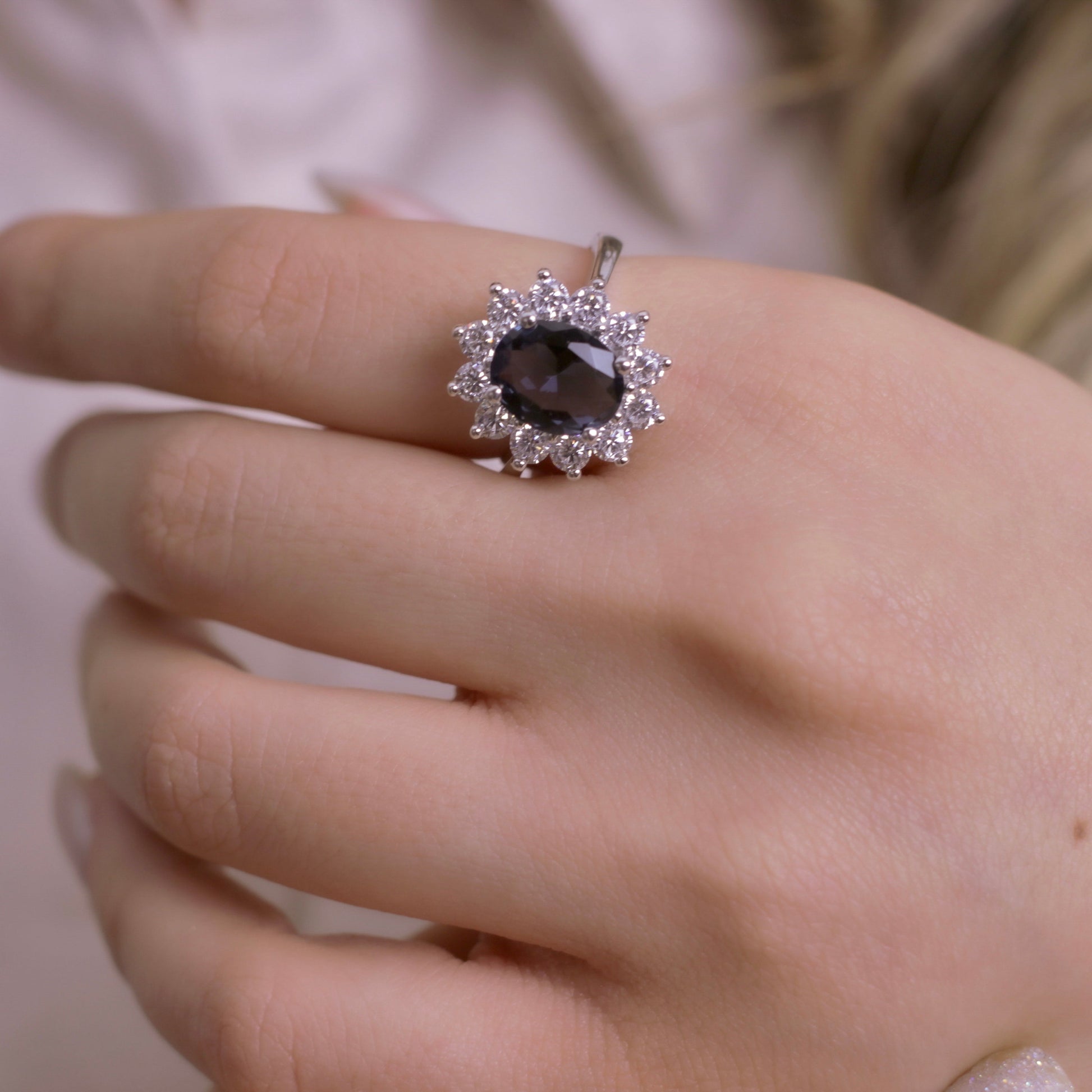 Discover the timeless beauty of the Big Oval Entourage Blue Ring. This piece is a true masterpiece, steeped in mystery and surrounded by legends. This ring will make you feel like royalty, a true gem among gems. With its exquisite oval blue stone, the Oval Entourage Ring is sure to make a lasting impression. Crafted with 925 Sterling Silver, this ring is available in your choice of yellow, pink or white gold, to match your style and elegance.