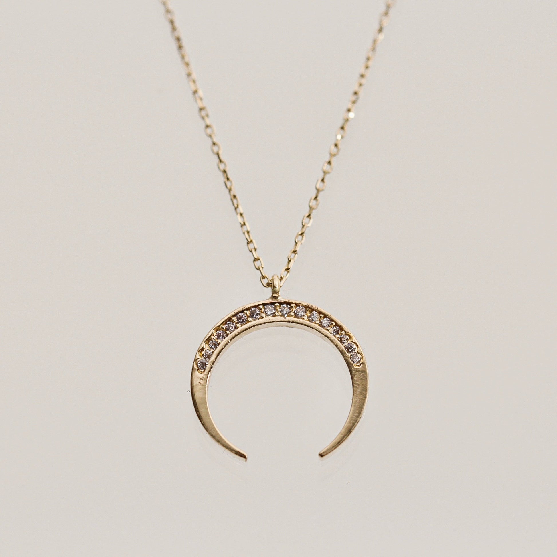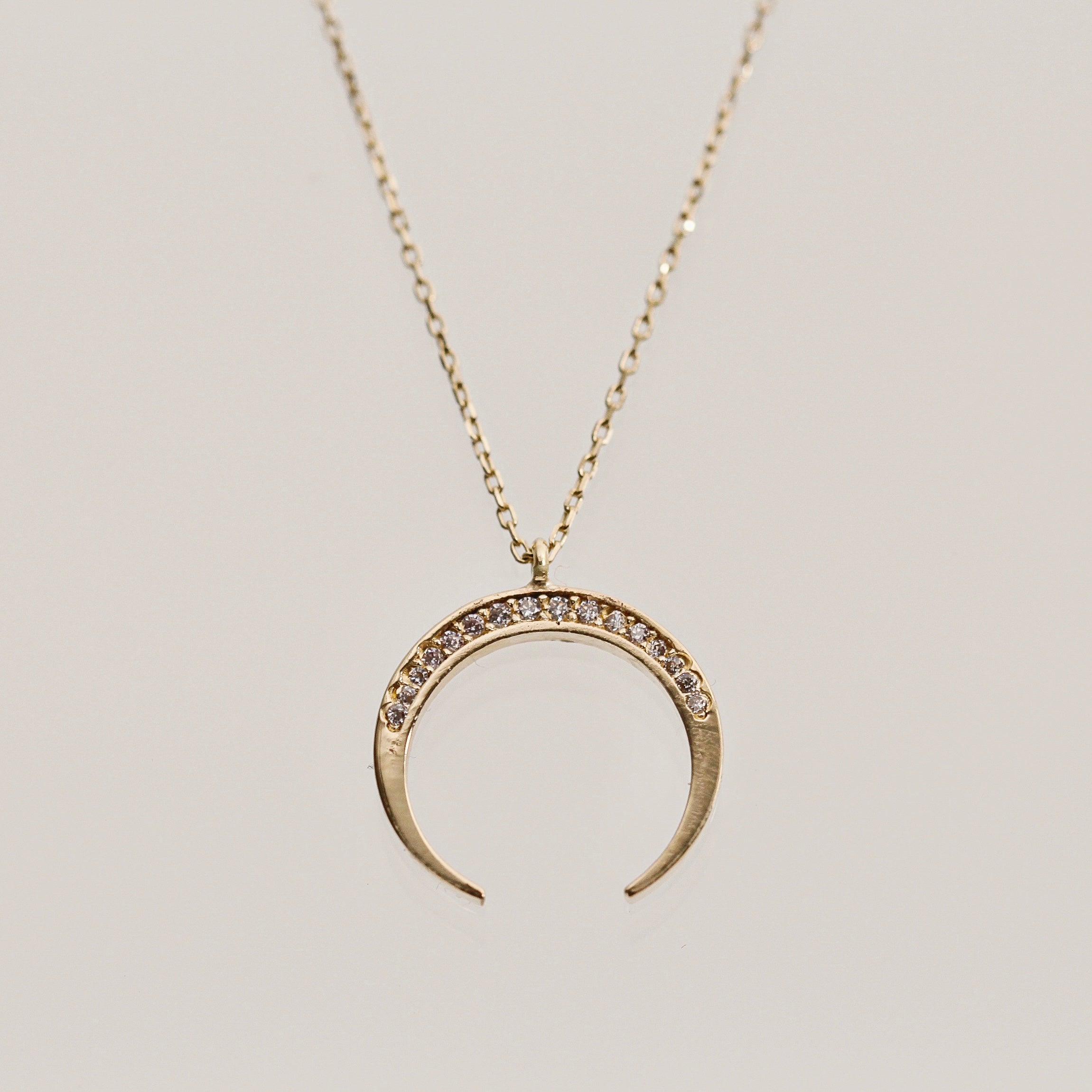 Eons ago, deep within the earth's crust, the raw crystals of these gemstones began to form. Each one a unique creation, shaped by the intense heat and pressure of their surroundings. Now, we've crafted them into a beautiful piece of jewelry for you to wear and cherish. This Little Crescent Pendant Necklace is the perfect way to add a touch of elegance to any outfit.