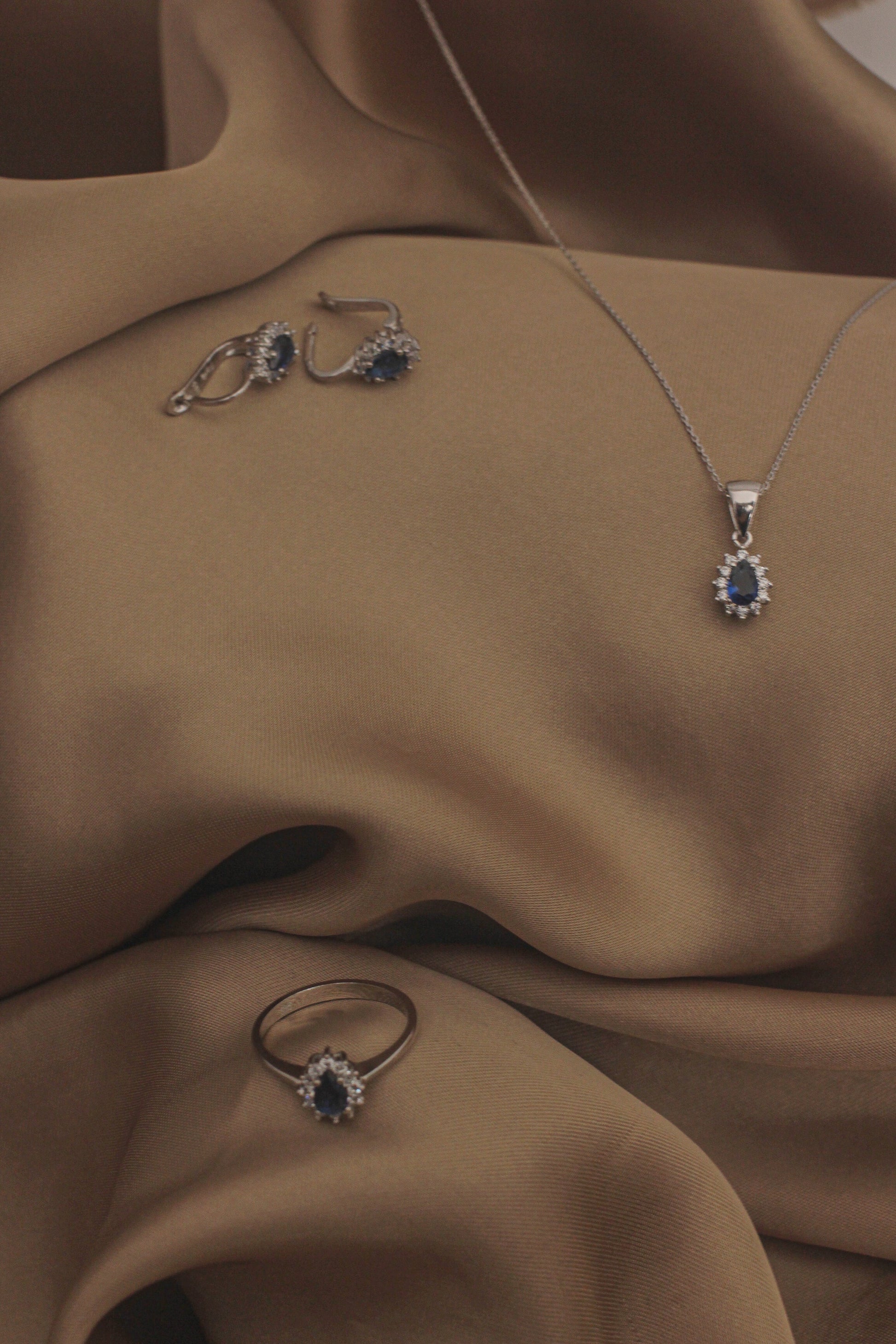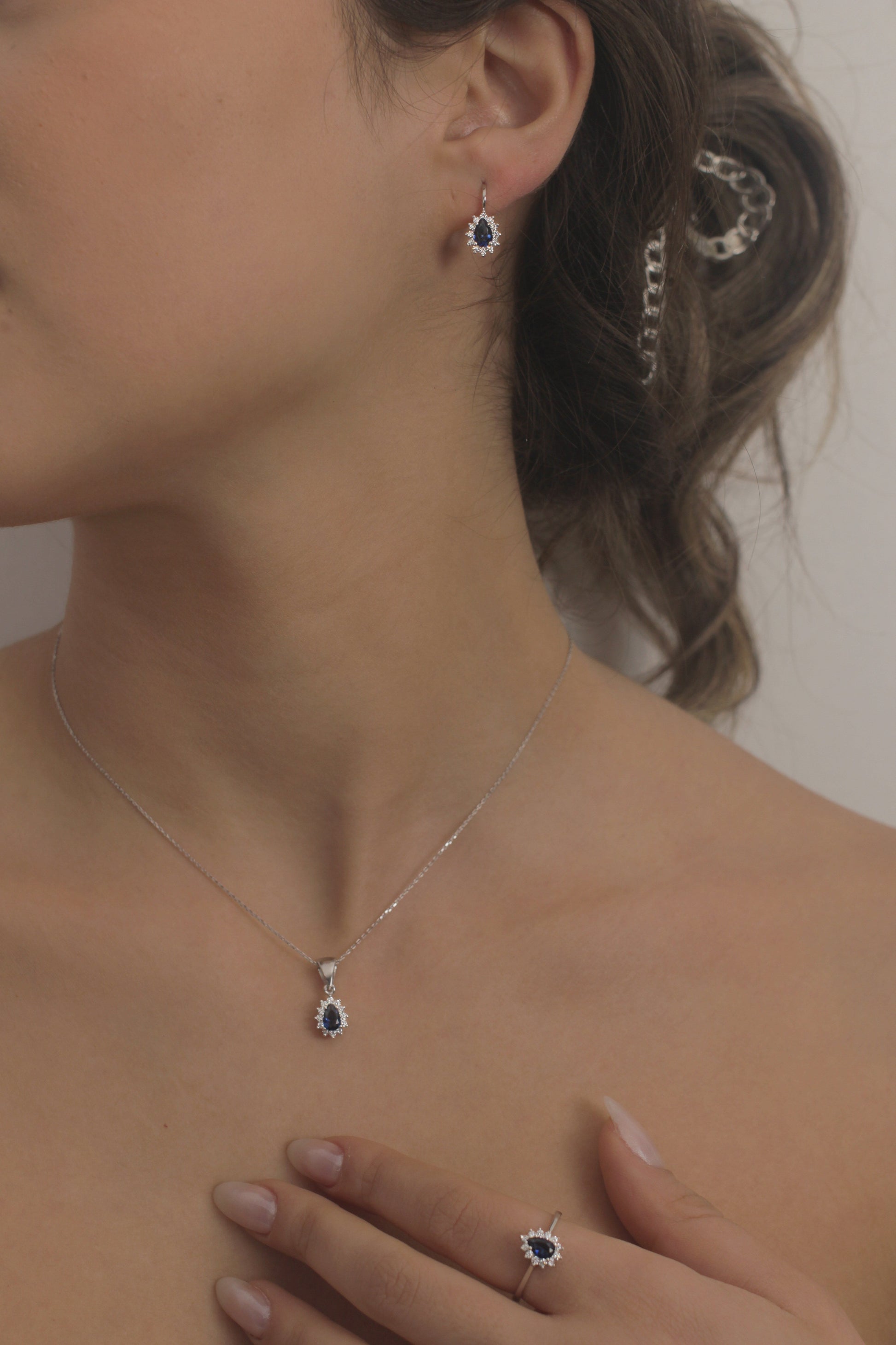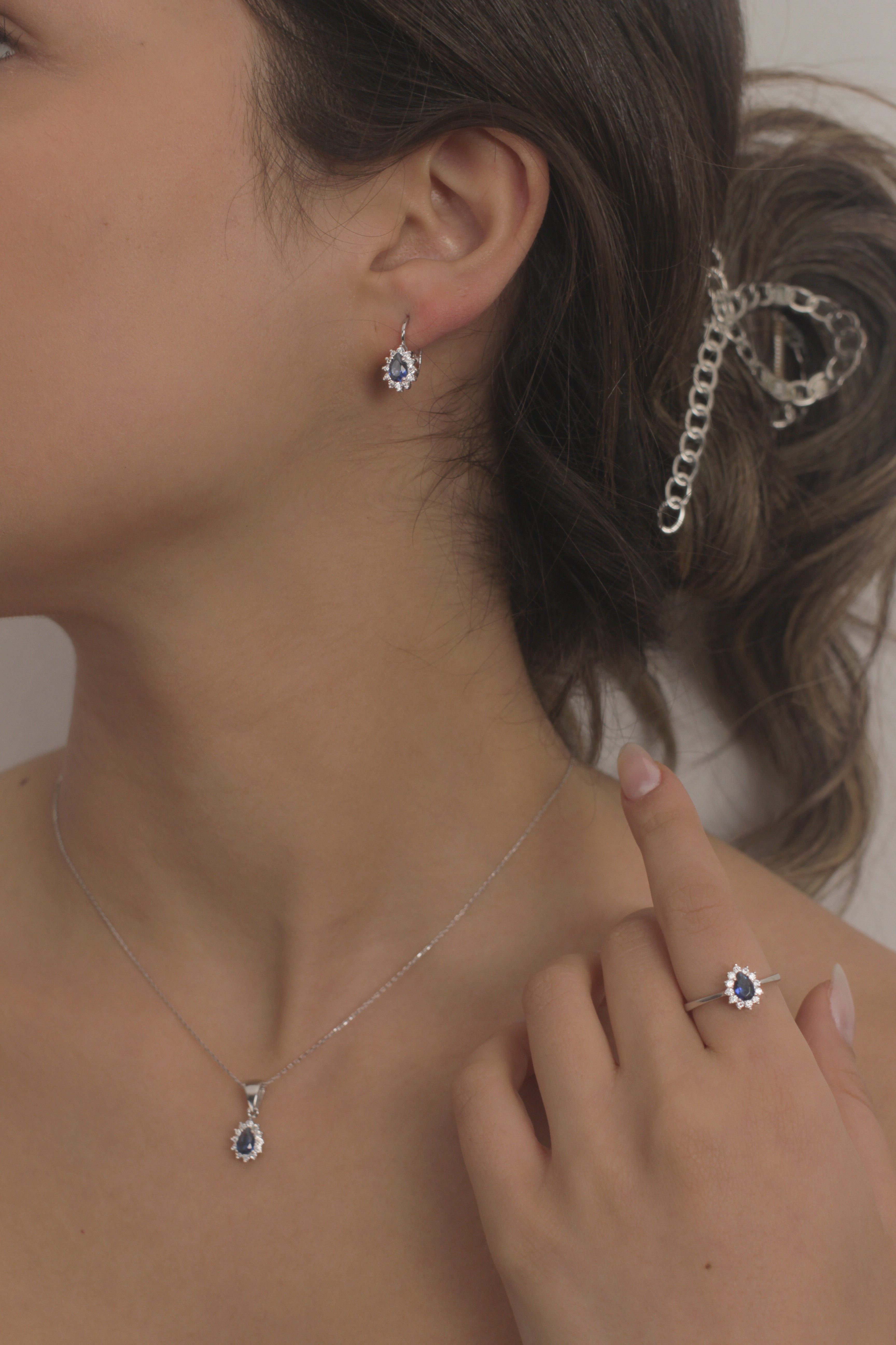 925 Sterling Silver Drop Cut Entourage Blue Full Set