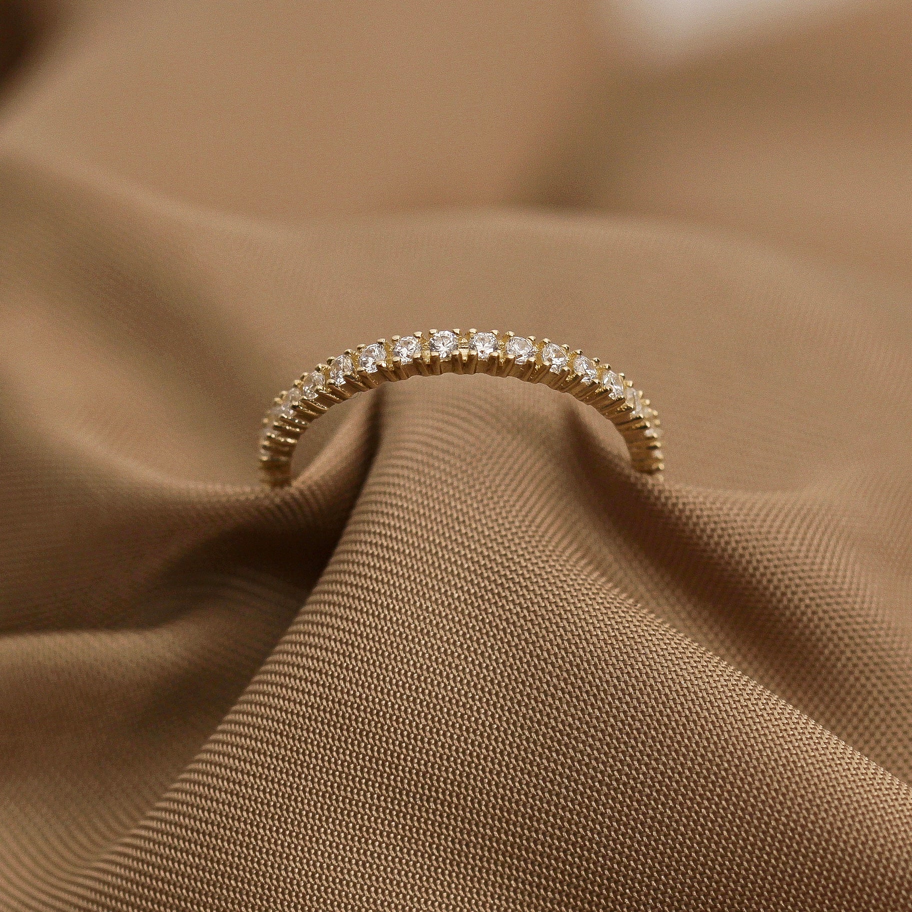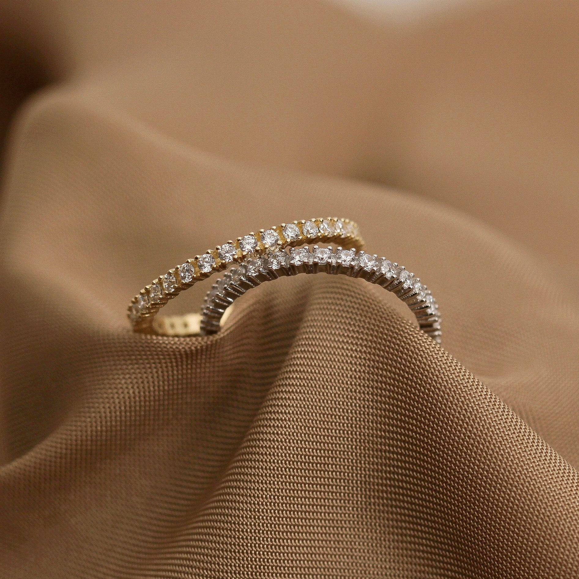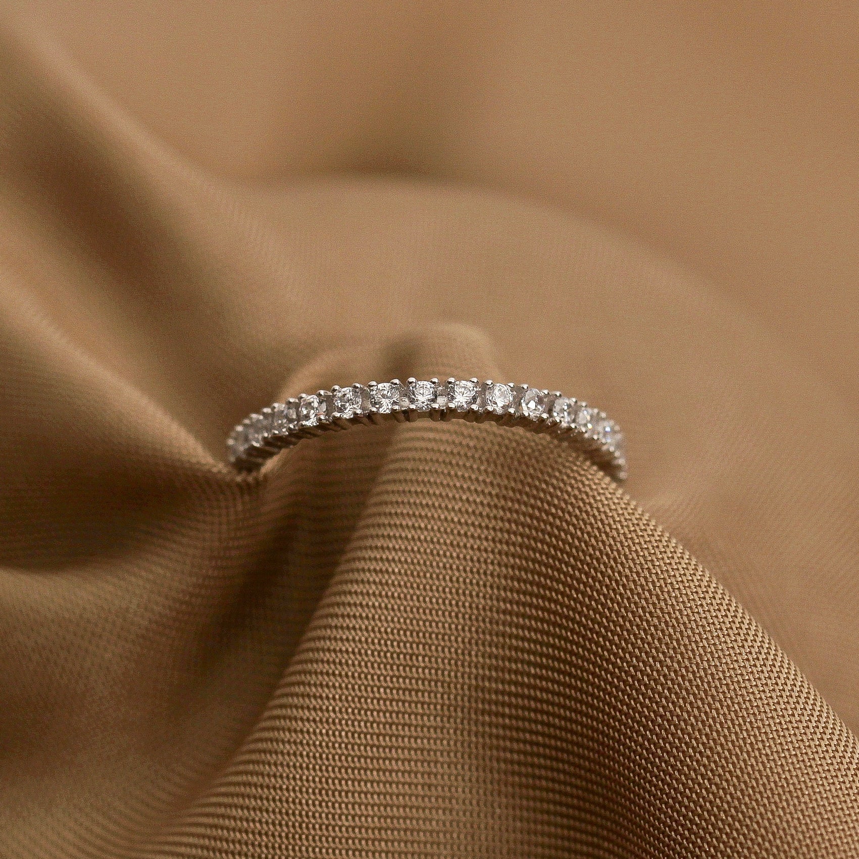 Embrace the everlasting allure of our Eternity Wedding Band Ring. Let it stand as a timeless symbol of your adoration for classic and enduring style. This ring draws inspiration from the elegance of the past, capturing the luxury and sophistication of each meticulously set round-cut gemstone. As you wear this ring, may it become a cherished part of your jewelry collection, symbolizing eternal love and commitment. With its minimalist design, this 925 Sterling Silver ring holds more than just beauty – it holds sentimental value. Whether presented as a gift for Mother's Day, an expression of love on Valentine's Day, a memorable Christmas present, or a token of friendship, this personalized ring radiates unmatched style. Commemorate the beauty of love with our Eternity Wedding Band Ring – a true masterpiece that encapsulates the essence of everlasting elegance.