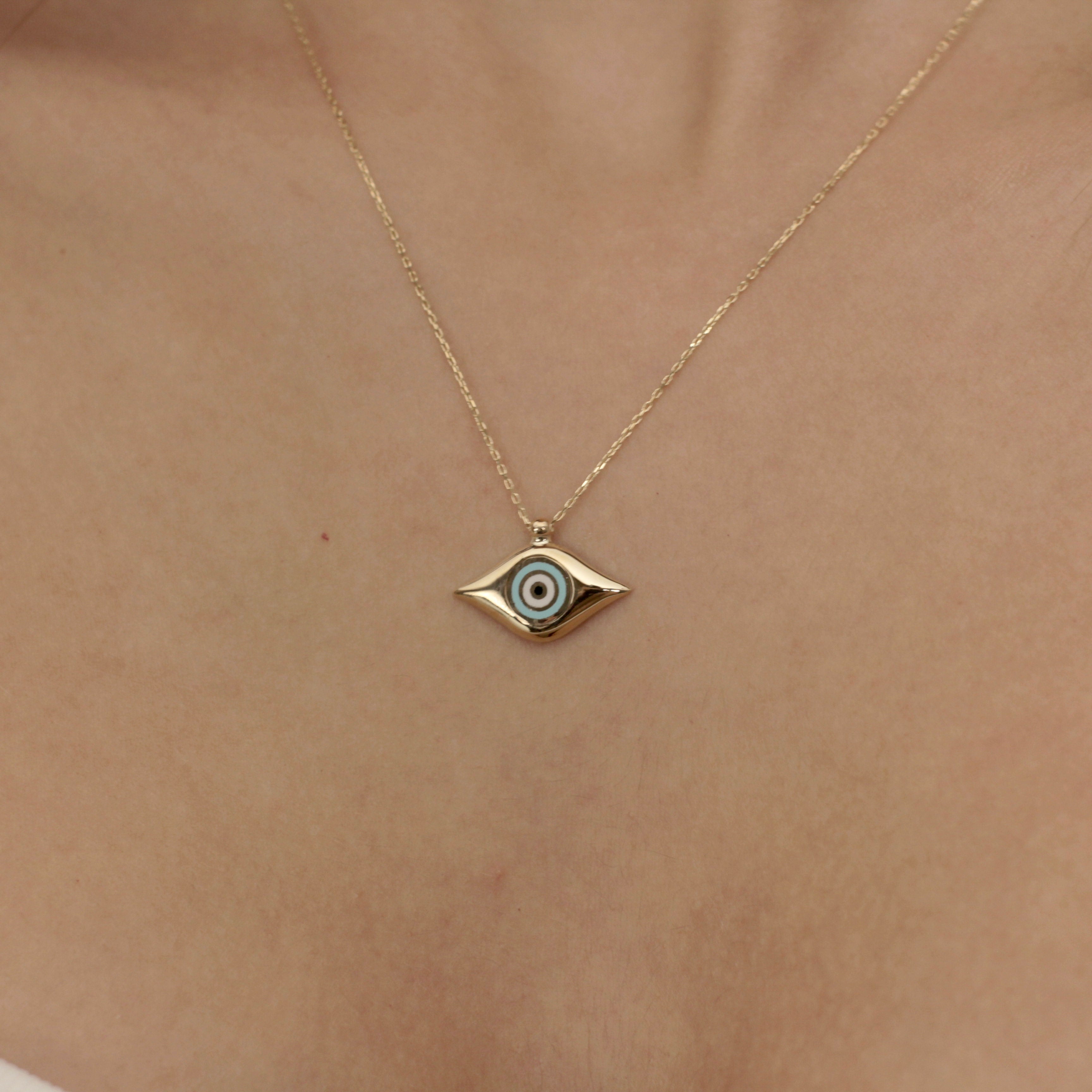 925 Sterling Silver Light Blue Evil Eye Necklace