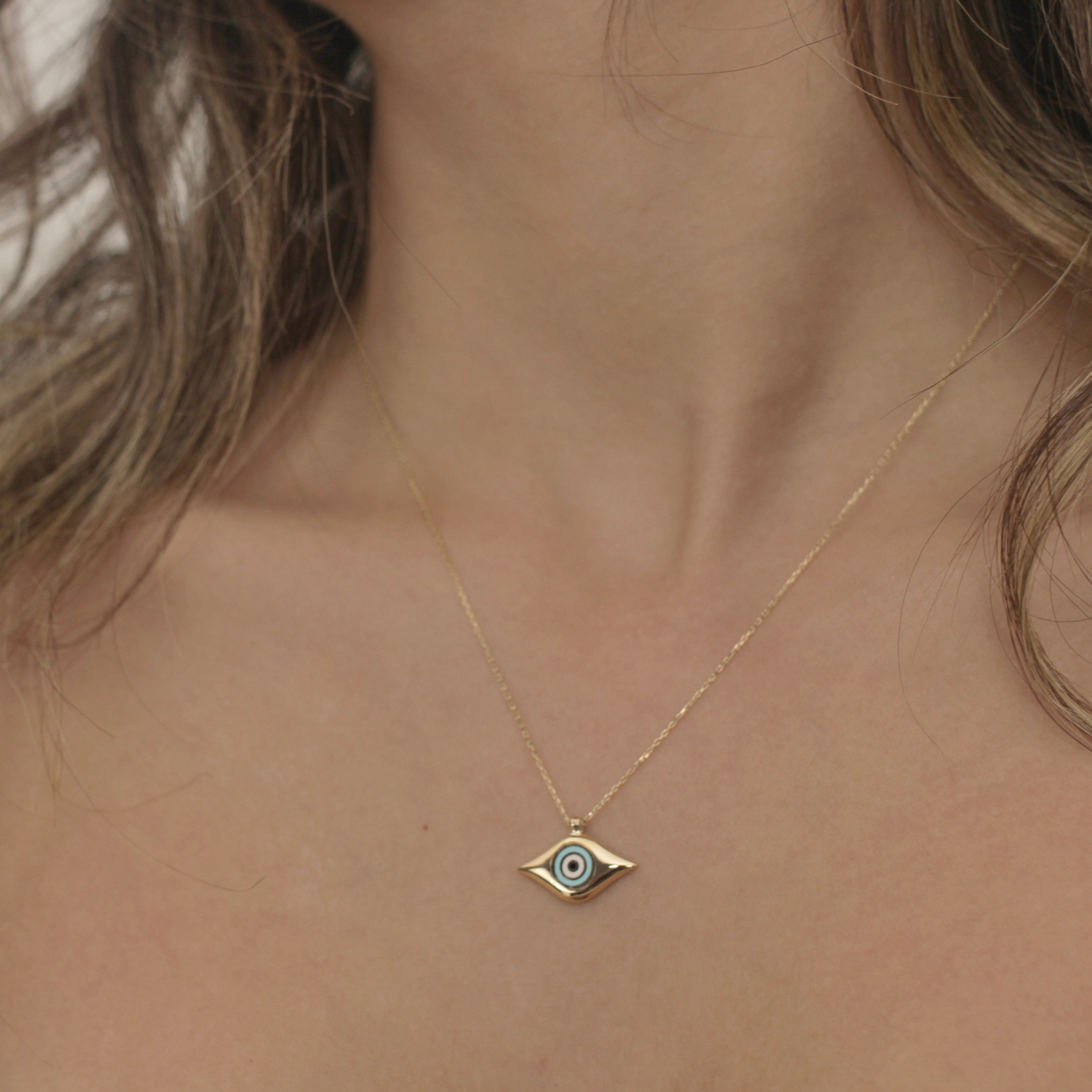 The Evil Eye pendant necklace is an ancient symbol of protection and luck, believed to ward off harm and bring good fortune. This exquisite pendant in 925 Sterling Silver, featuring a round cut stone, is the perfect way to bring some extra luck into your life.