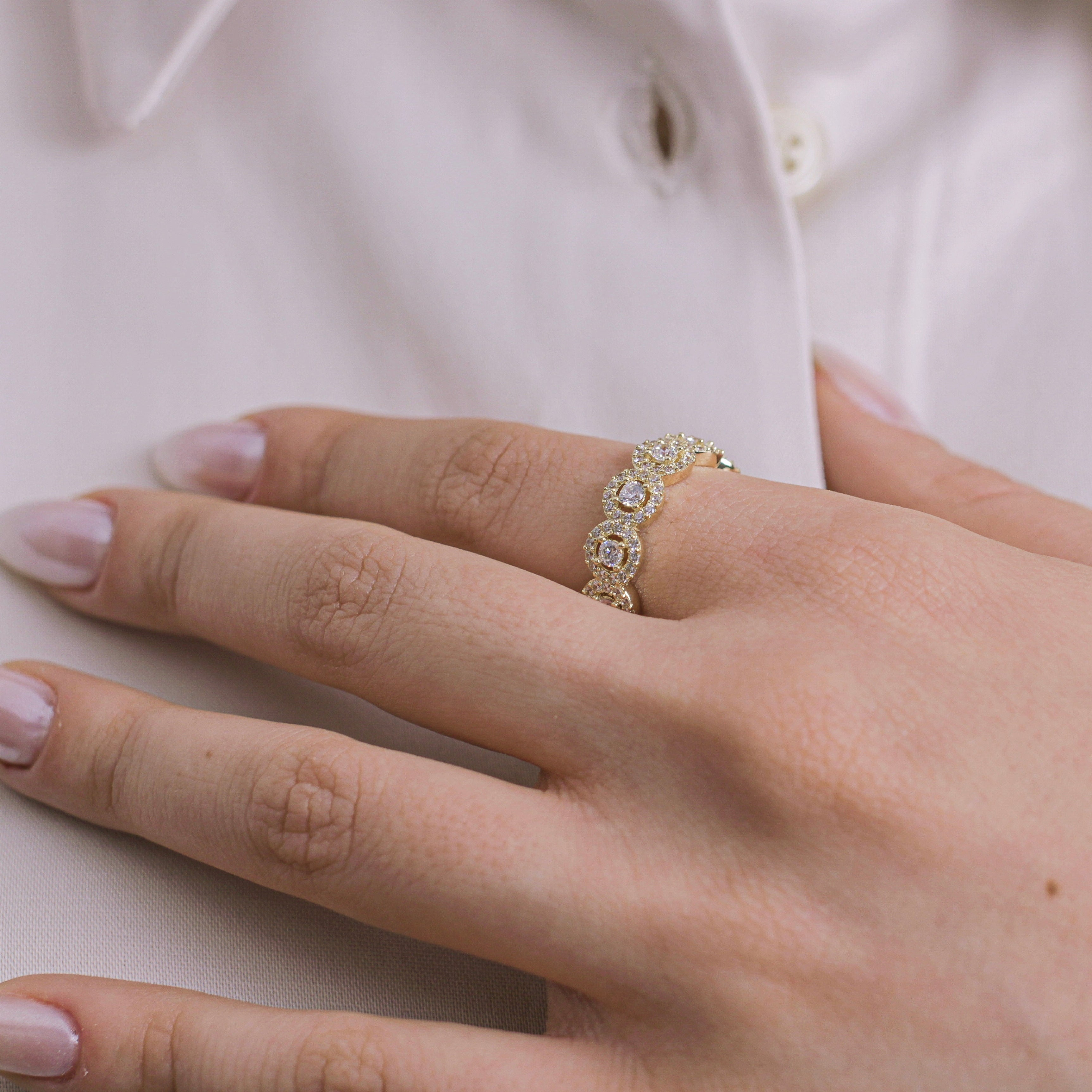 Embrace the everlasting allure of our Eternity Wedding Band Ring. Let it stand as a timeless symbol of your adoration for classic and enduring style. This ring draws inspiration from the elegance of the past, capturing the luxury and sophistication of each meticulously set round-cut gemstone. As you wear this ring, may it become a cherished part of your jewelry collection, symbolizing eternal love and commitment. With its minimalist design, this 925 Sterling Silver ring holds more than just beauty – it holds sentimental value. Whether presented as a gift for Mother's Day, an expression of love on Valentine's Day, a memorable Christmas present, or a token of friendship, this personalized ring radiates unmatched style. Commemorate the beauty of love with our Eternity Wedding Band Ring – a true masterpiece that encapsulates the essence of everlasting elegance.