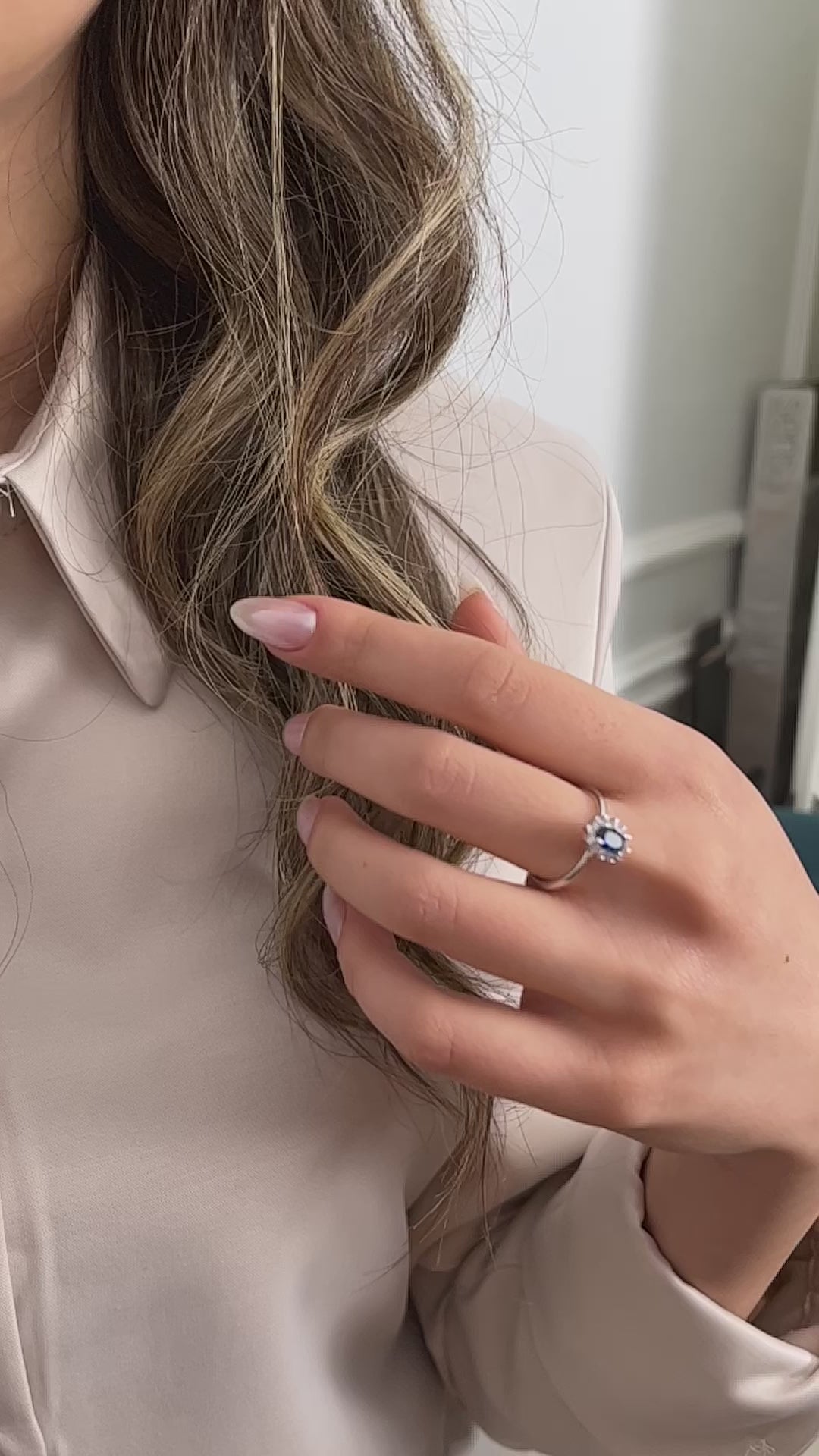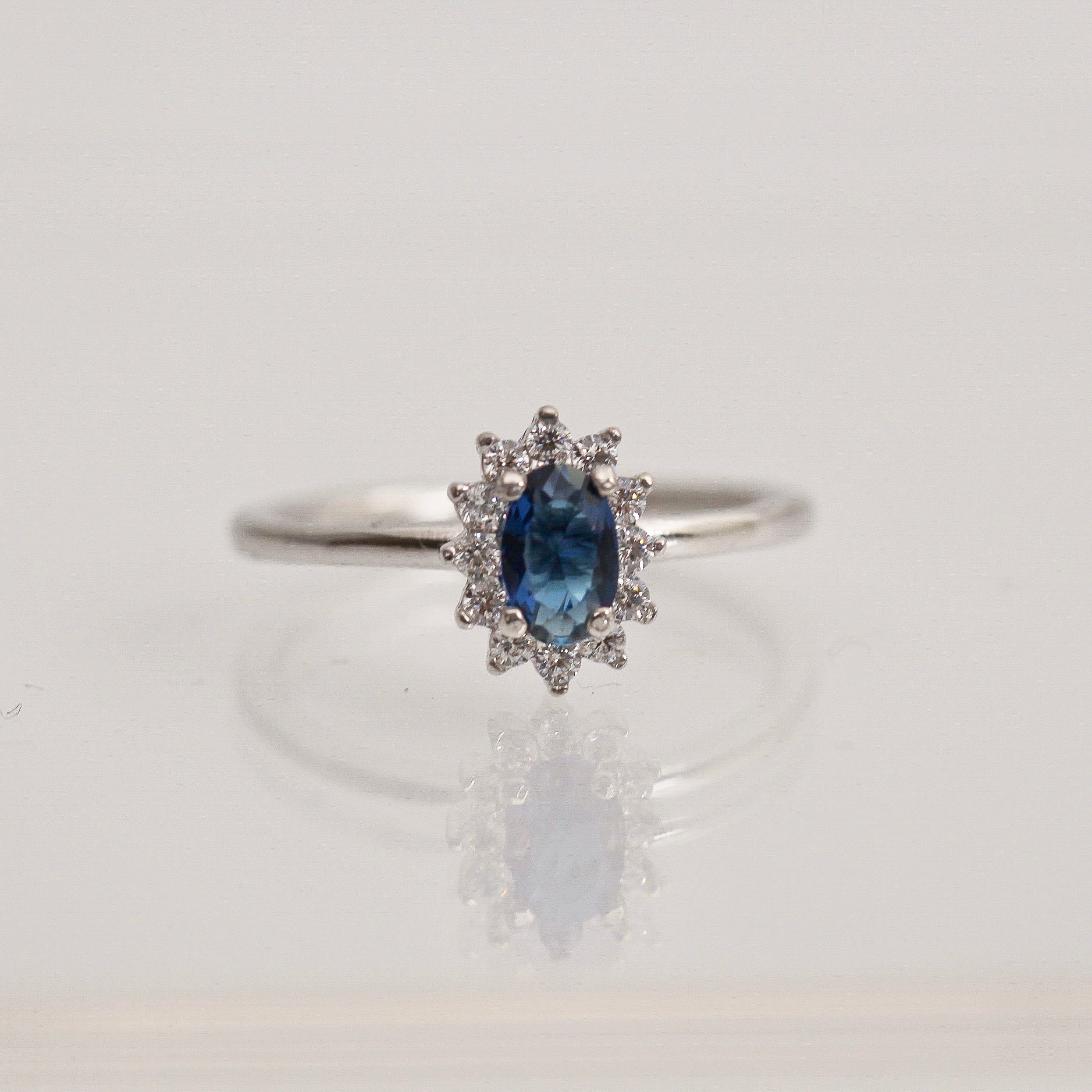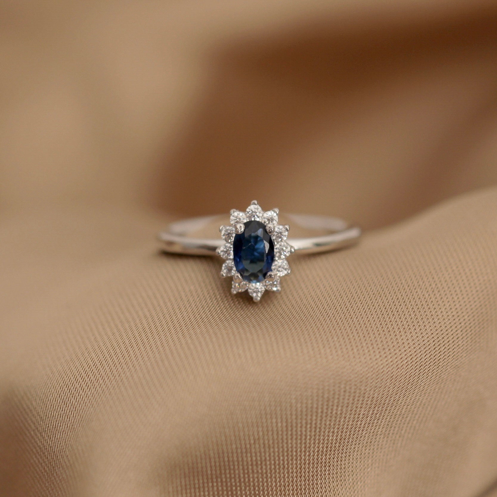 Discover the timeless beauty of the Oval Entourage Blue Ring. This piece is a true masterpiece, steeped in mystery and surrounded by legends. This ring will make you feel like royalty, a true gem among gems. With its exquisite oval blue stone, the Oval Entourage Ring is sure to make a lasting impression. Crafted with 925 Sterling Silver, this ring is available in your choice of yellow, pink or white gold, to match your style and elegance.