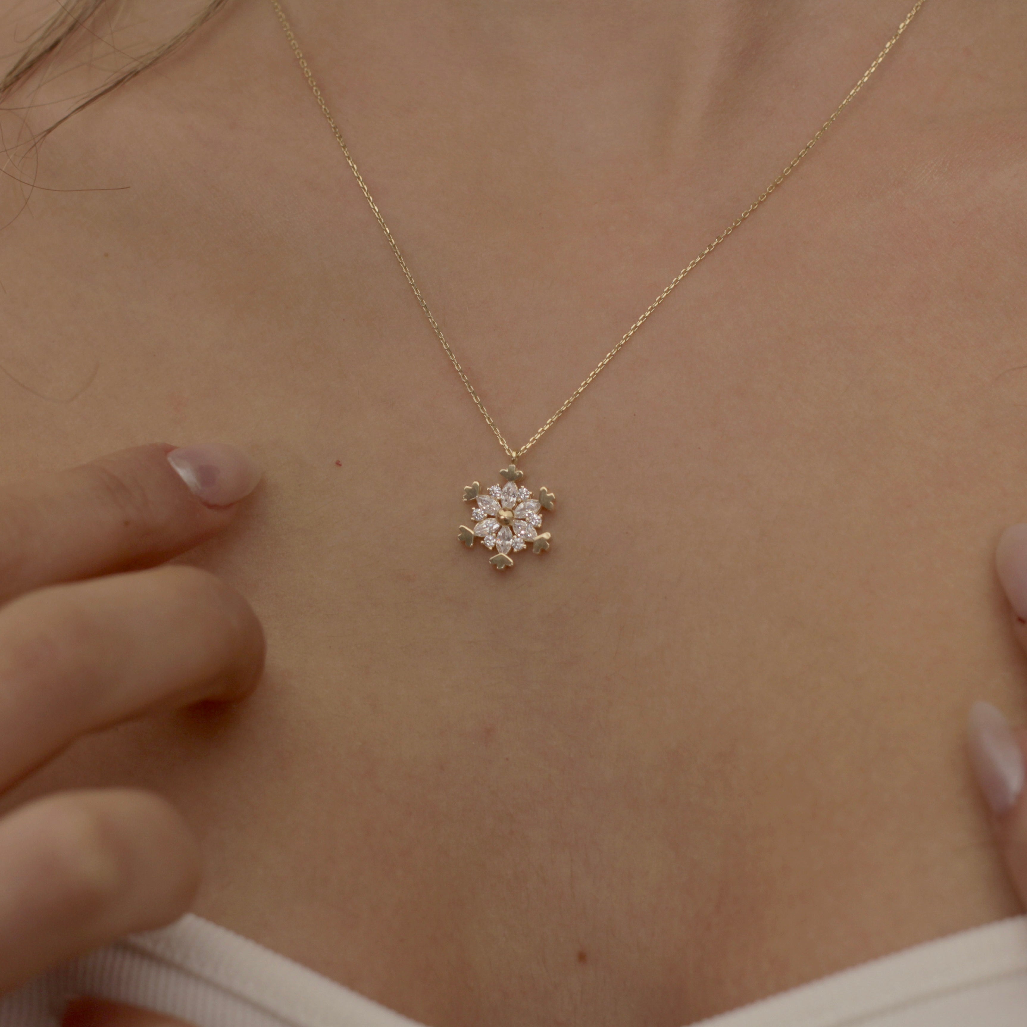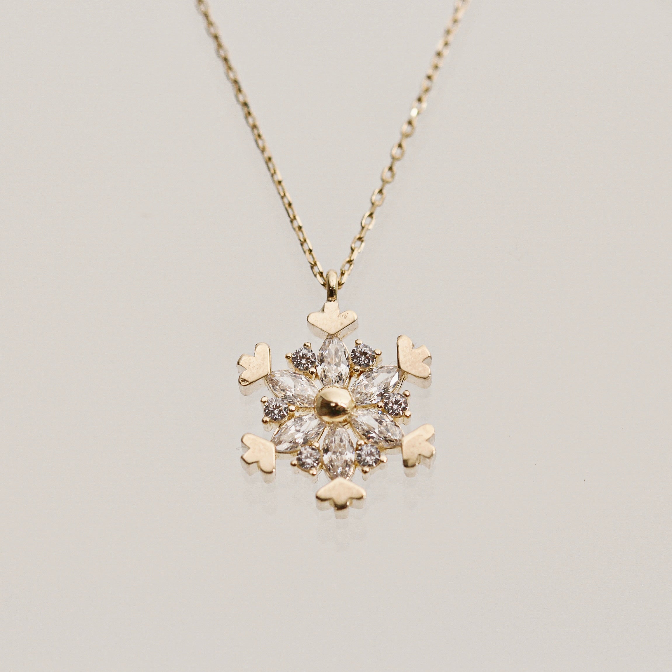 For thousands of years, people have been drawn to the alluring beauty of gemstones. This snowflake pendant necklace is crafted with a unique blend of round cut stones that bring sparkle and mysticity to any look. The gemstones are sourced from the Mount Ararat, where they are believed to be imbued with powerful energies that provide protection and positivity.