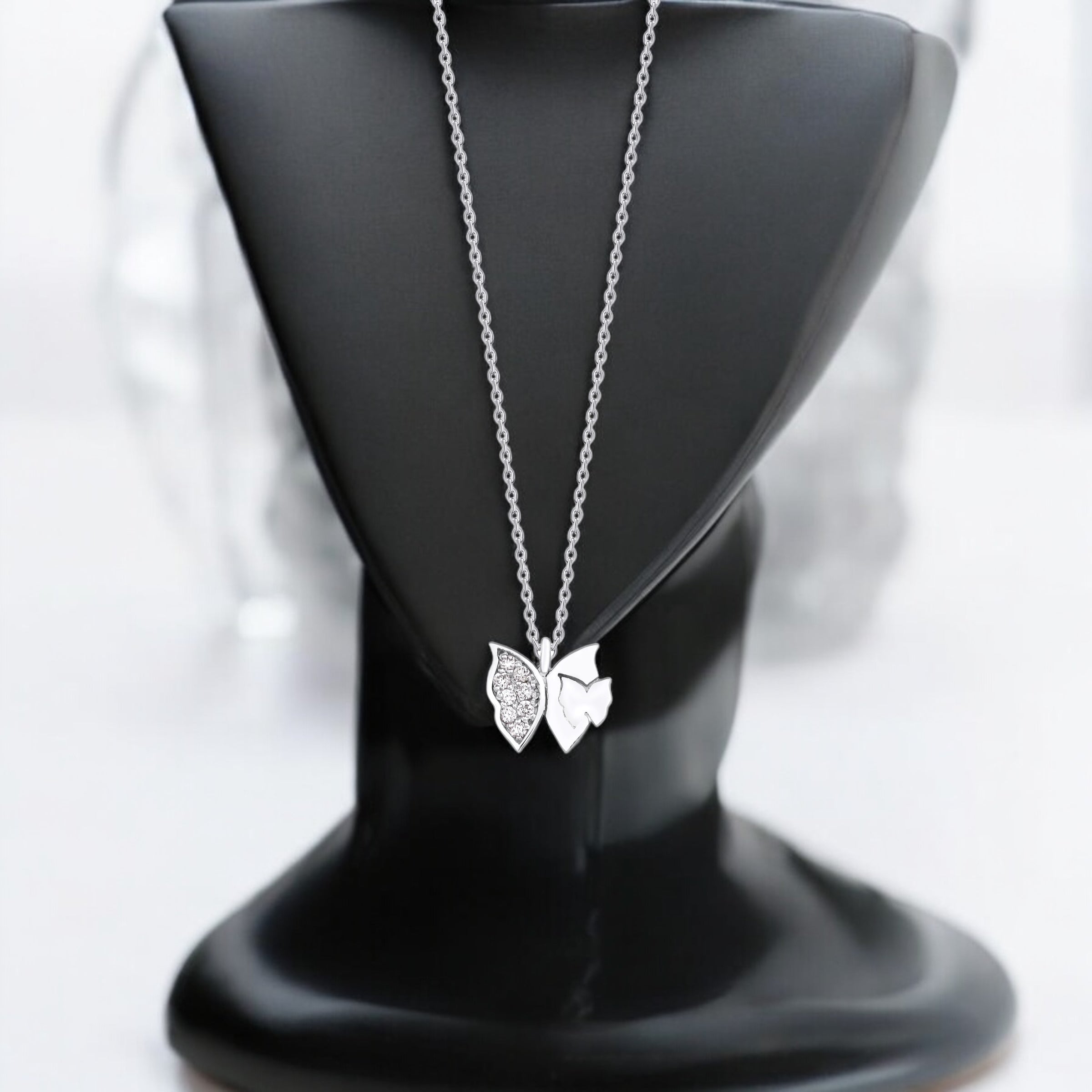 Embrace freedom and beauty with the Butterfly Wing Diamond Necklace. Featuring delicate butterfly wings adorned with sparkling diamonds, this necklace captures the essence of transformation. Made in 14k solid gold, it is a perfect gift for those who love nature and elegance. Available in yellow, rose, or white gold.