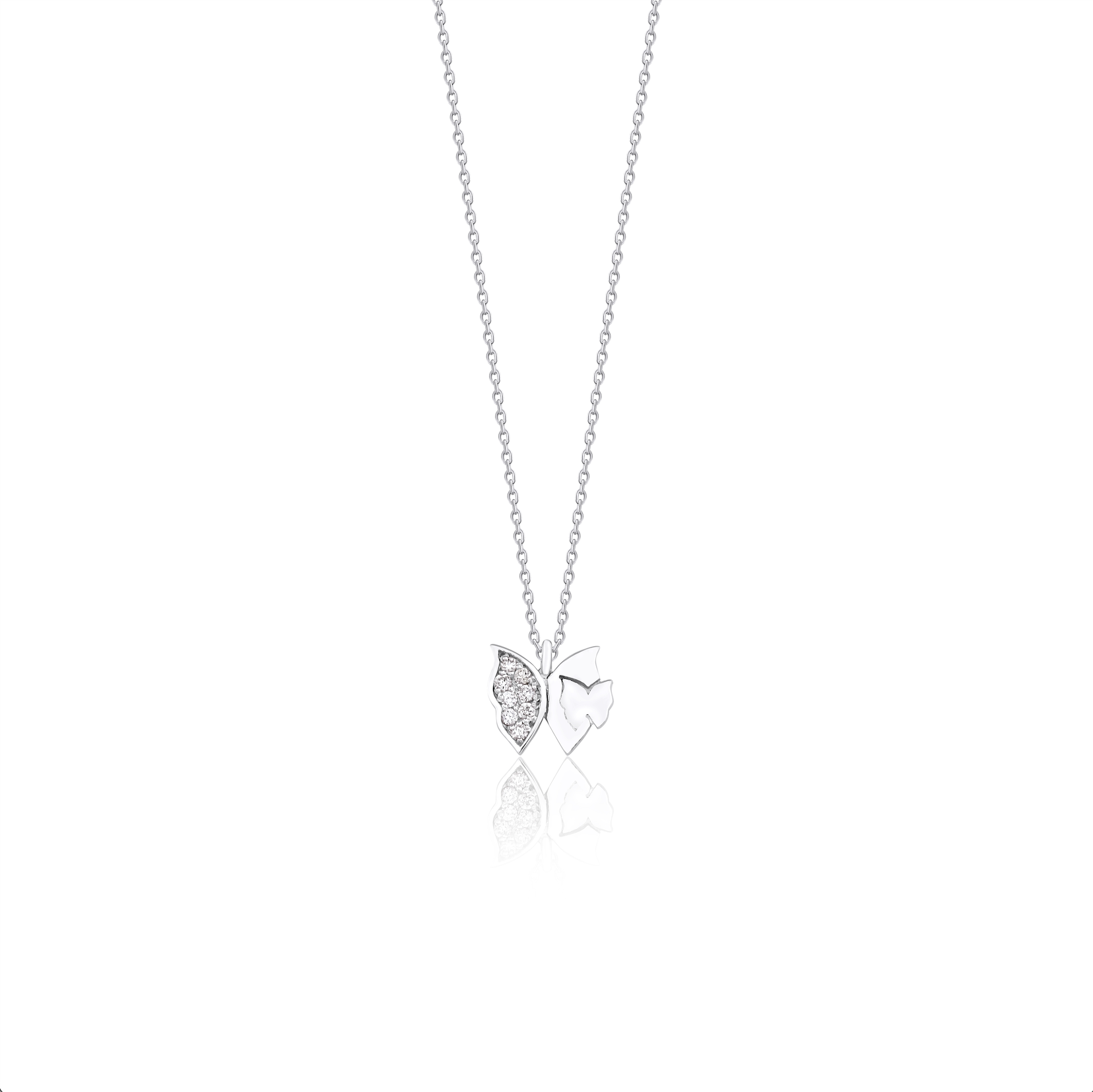 14K Solid Gold Graceful Butterfly Wing Diamond Necklace