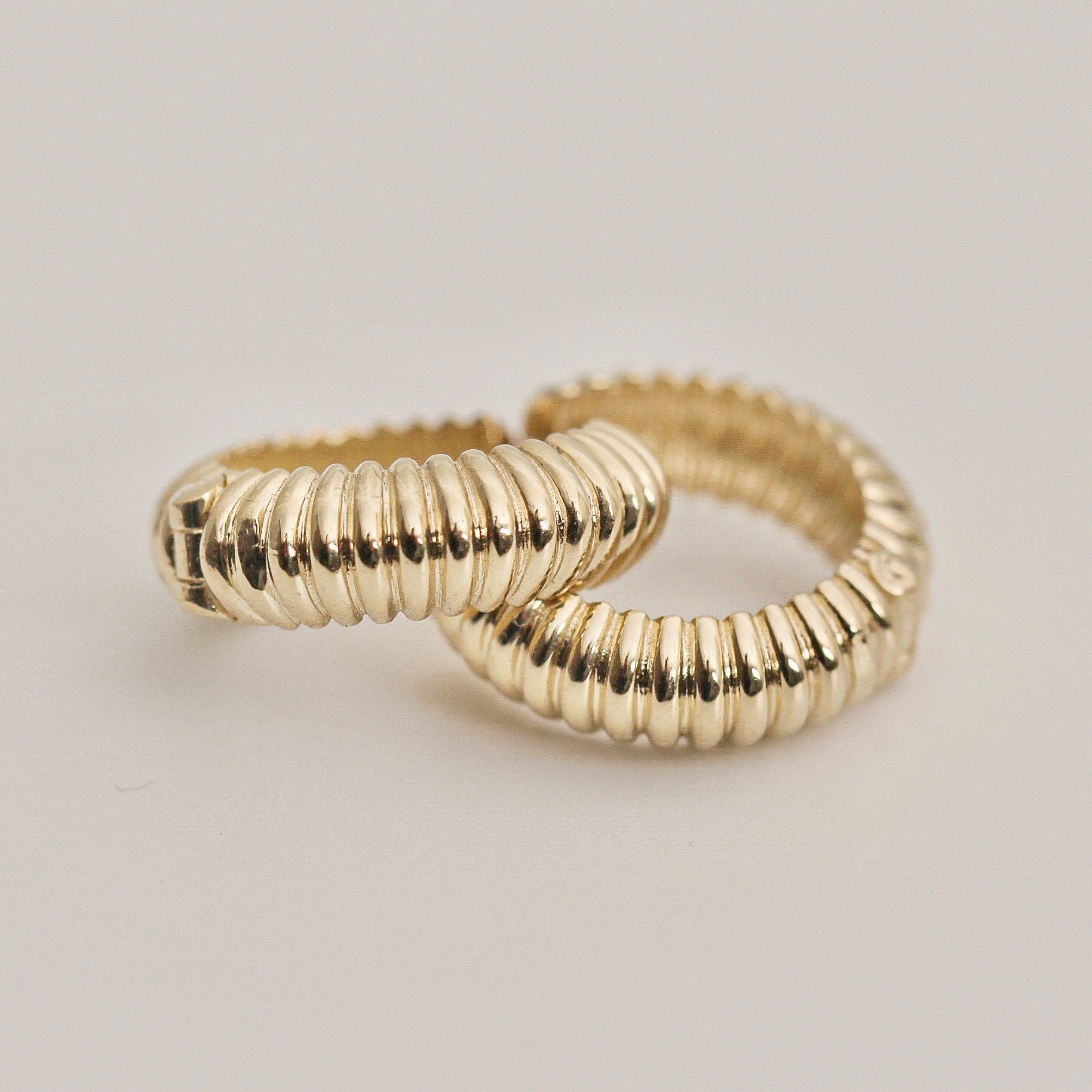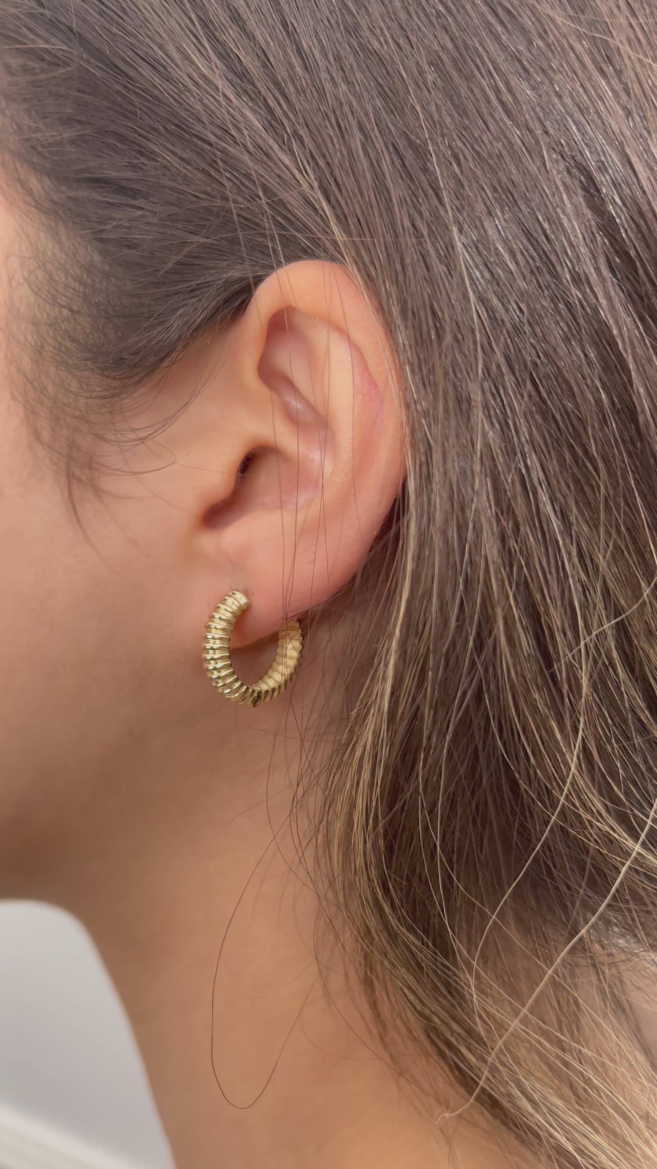 Twisted in elegance, timeless in style. These 14k solid gold twisted hoop earrings are handcrafted with intricate detail, showcasing the perfect blend of modern design and classic sophistication. The gentle twist in the gold reflects light beautifully, adding a unique and luxurious touch to your look. Whether worn casually or for special occasions, these earrings bring a subtle twist of glamour to any outfit, embodying the enduring allure of fine craftsmanship and precious metal.