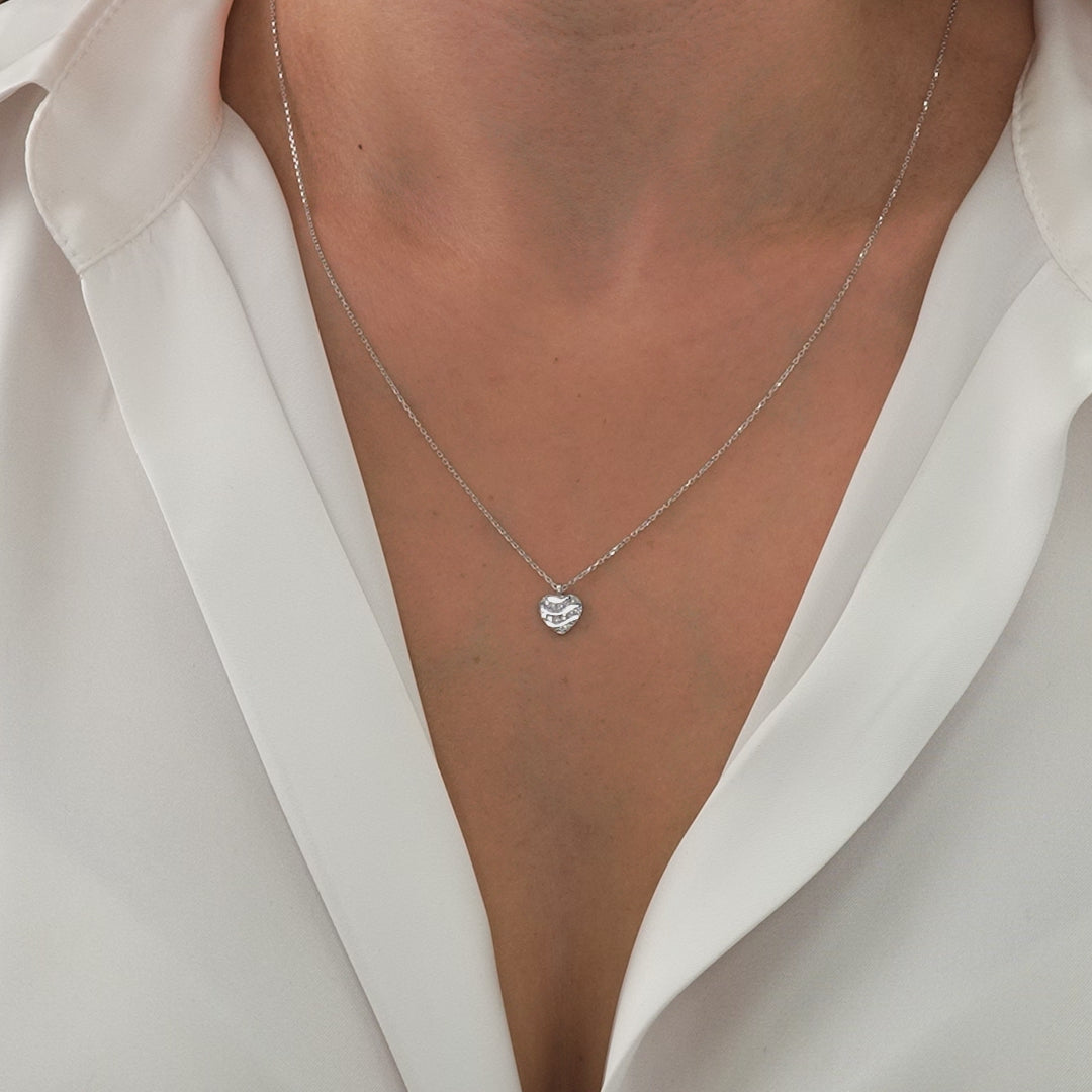 The Graduated Heart Diamond Necklace is a romantic design featuring a series of hearts in different sizes, each adorned with diamonds that increase in size as they progress. Made from 14k solid gold, this necklace adds a sophisticated touch to any occasion. Available in yellow, rose, or white gold.