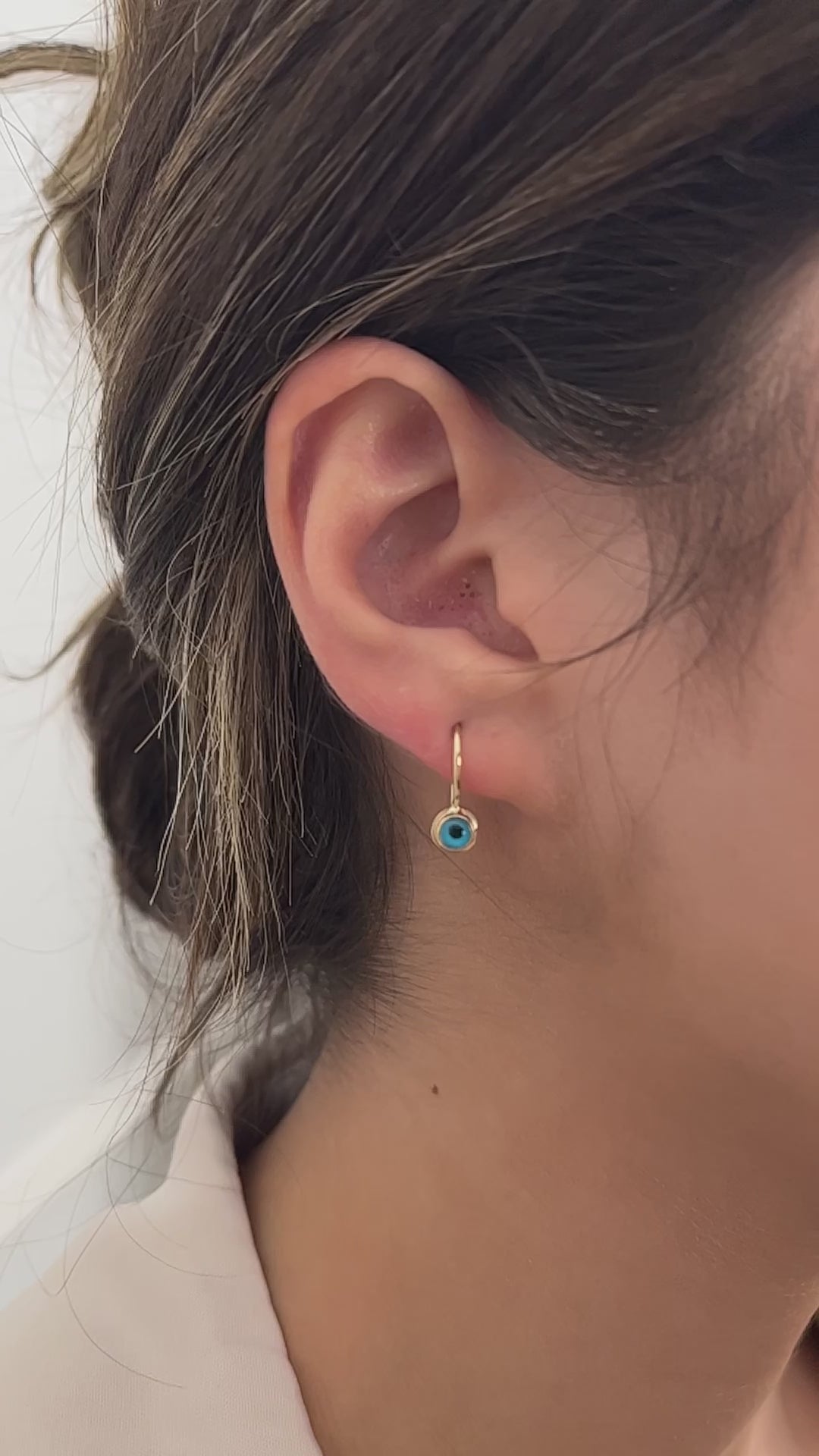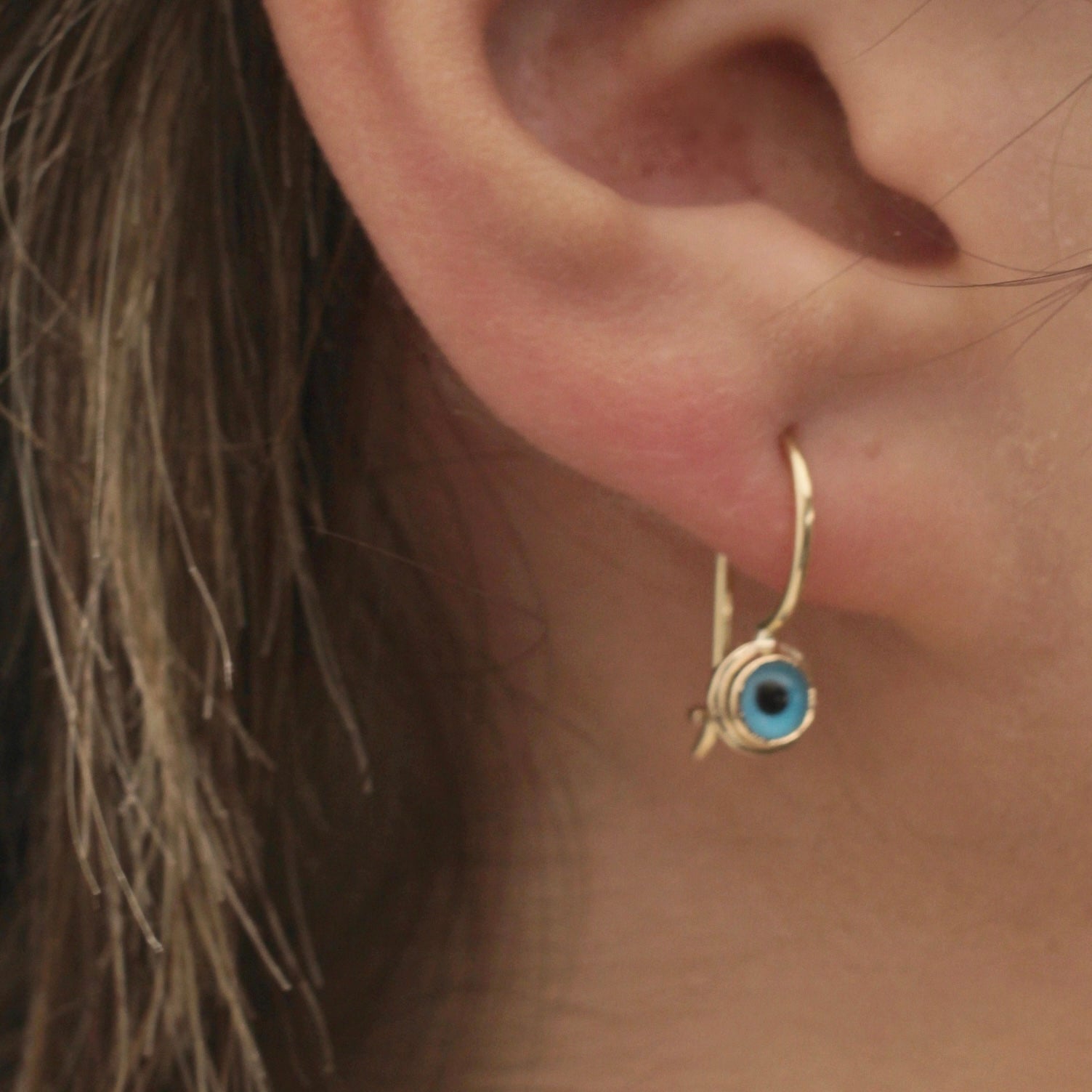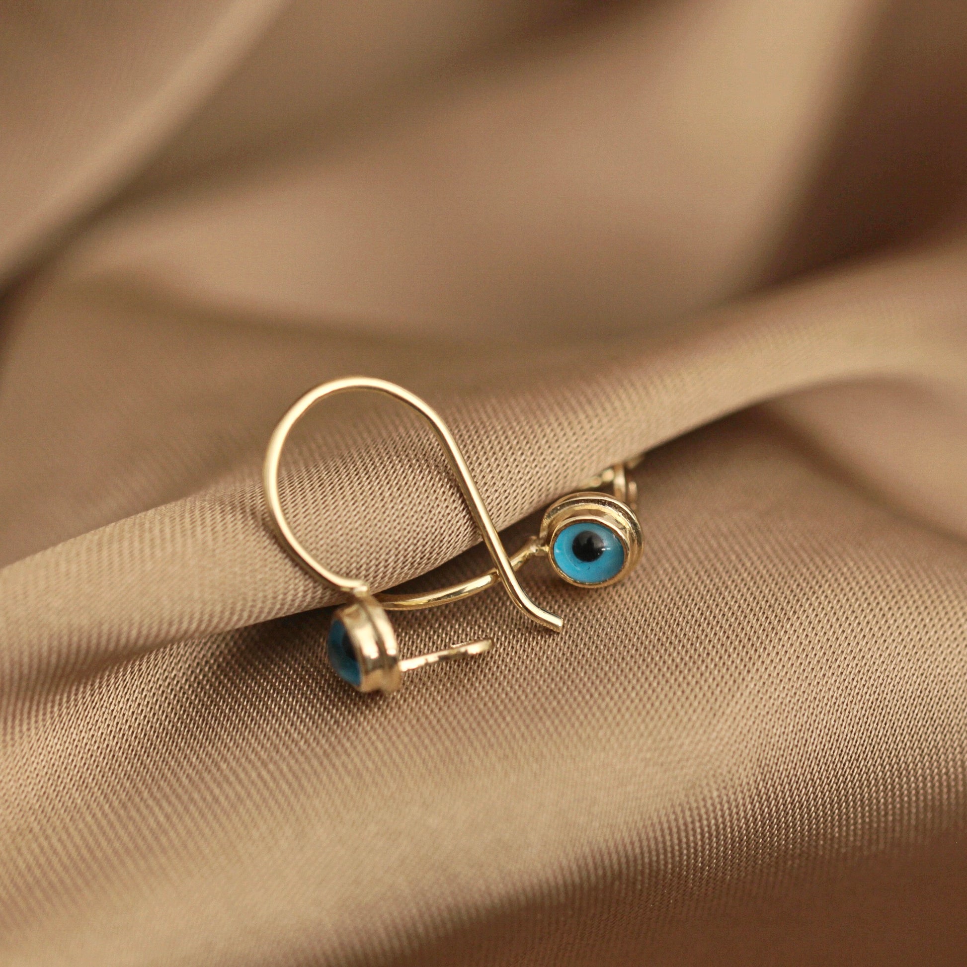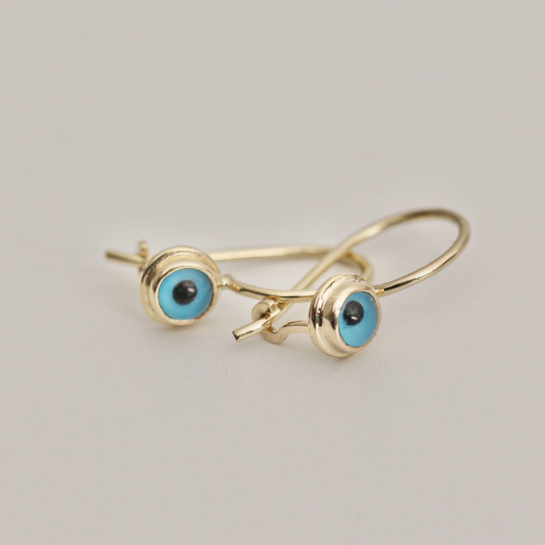 14K Solid Gold Thin Evil Eye Halo Hook Earrings