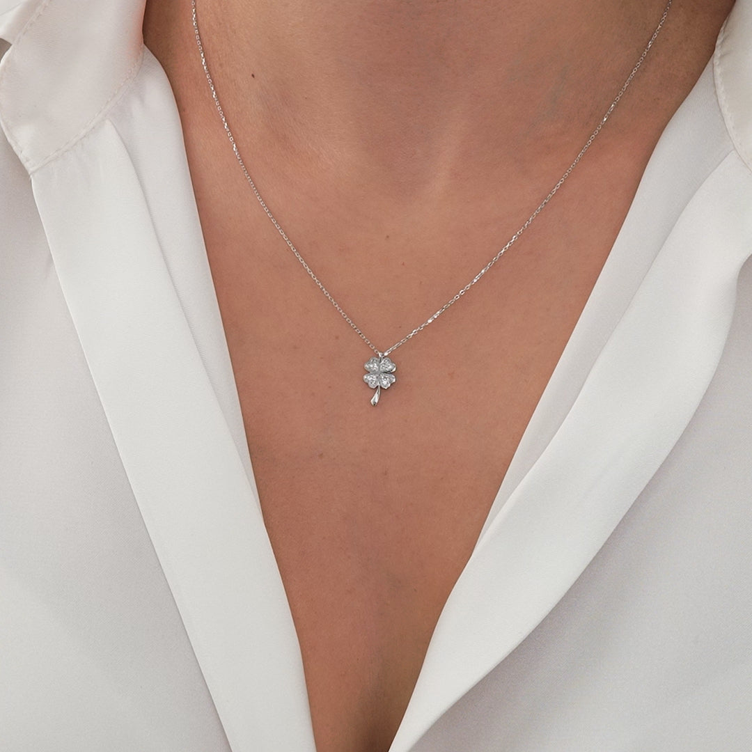 Find your luck with the Lucky Clover Diamond Necklace. This four-leaf clover design is adorned with sparkling diamonds, symbolizing good fortune and prosperity. Made with 14k solid gold, this necklace is a charming gift for someone special or as a personal good luck charm. Available in yellow, rose, or white gold.