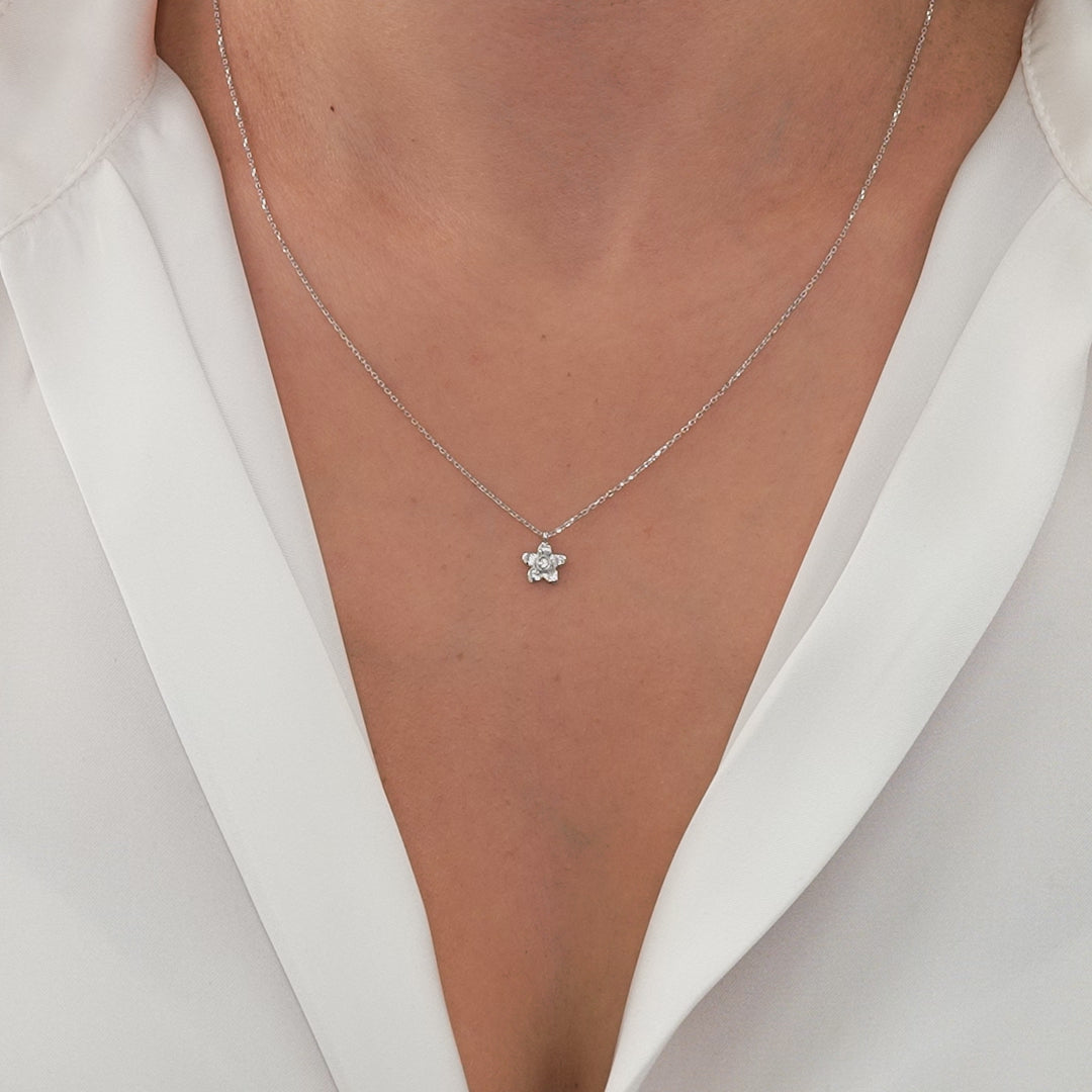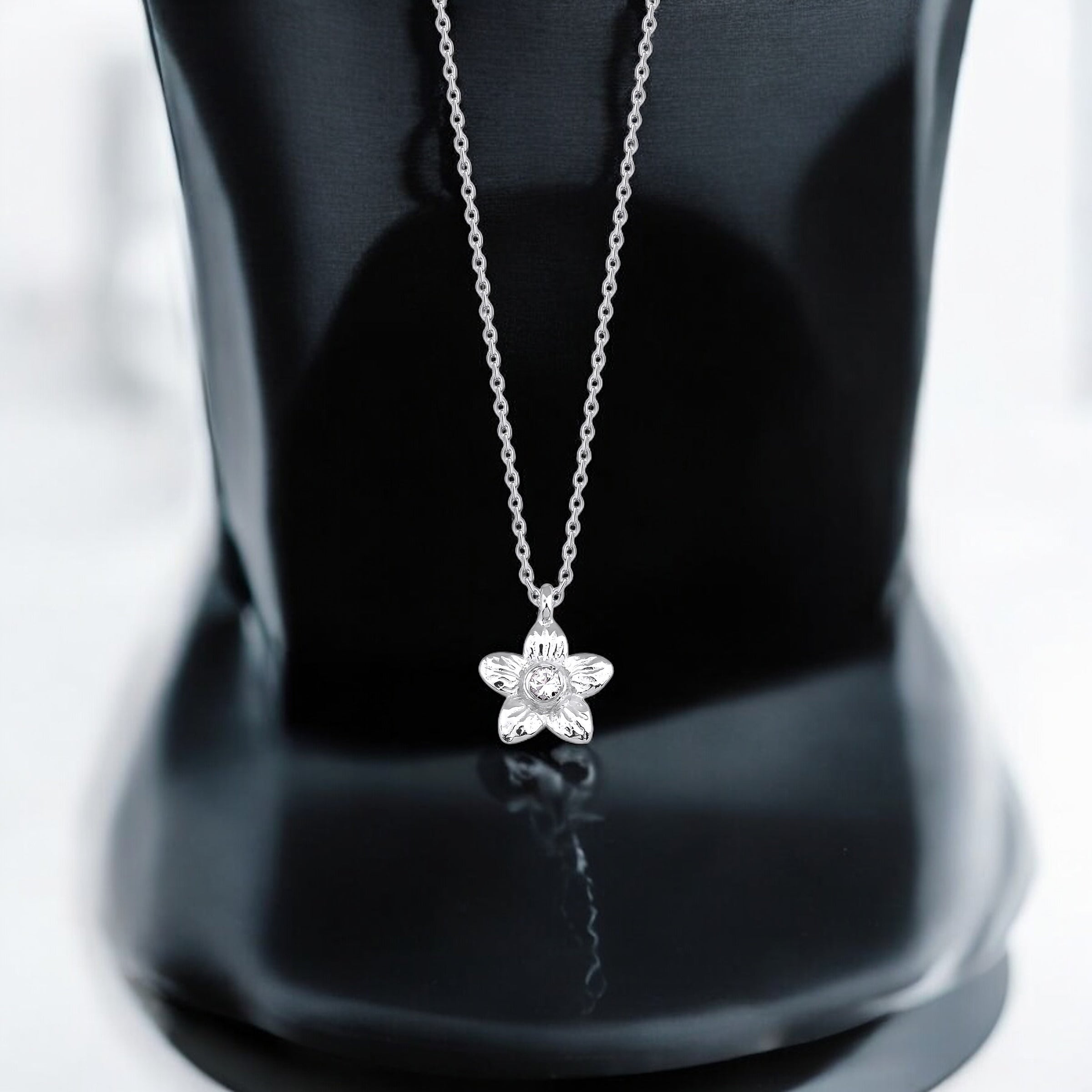 The Textured Petal Diamond Flower Necklace combines the beauty of nature with luxury. Each petal of the flower is textured and encrusted with diamonds, creating a stunning piece of jewelry. Crafted in 14k solid gold, it adds a touch of elegance to any occasion. Available in yellow, rose, or white gold.