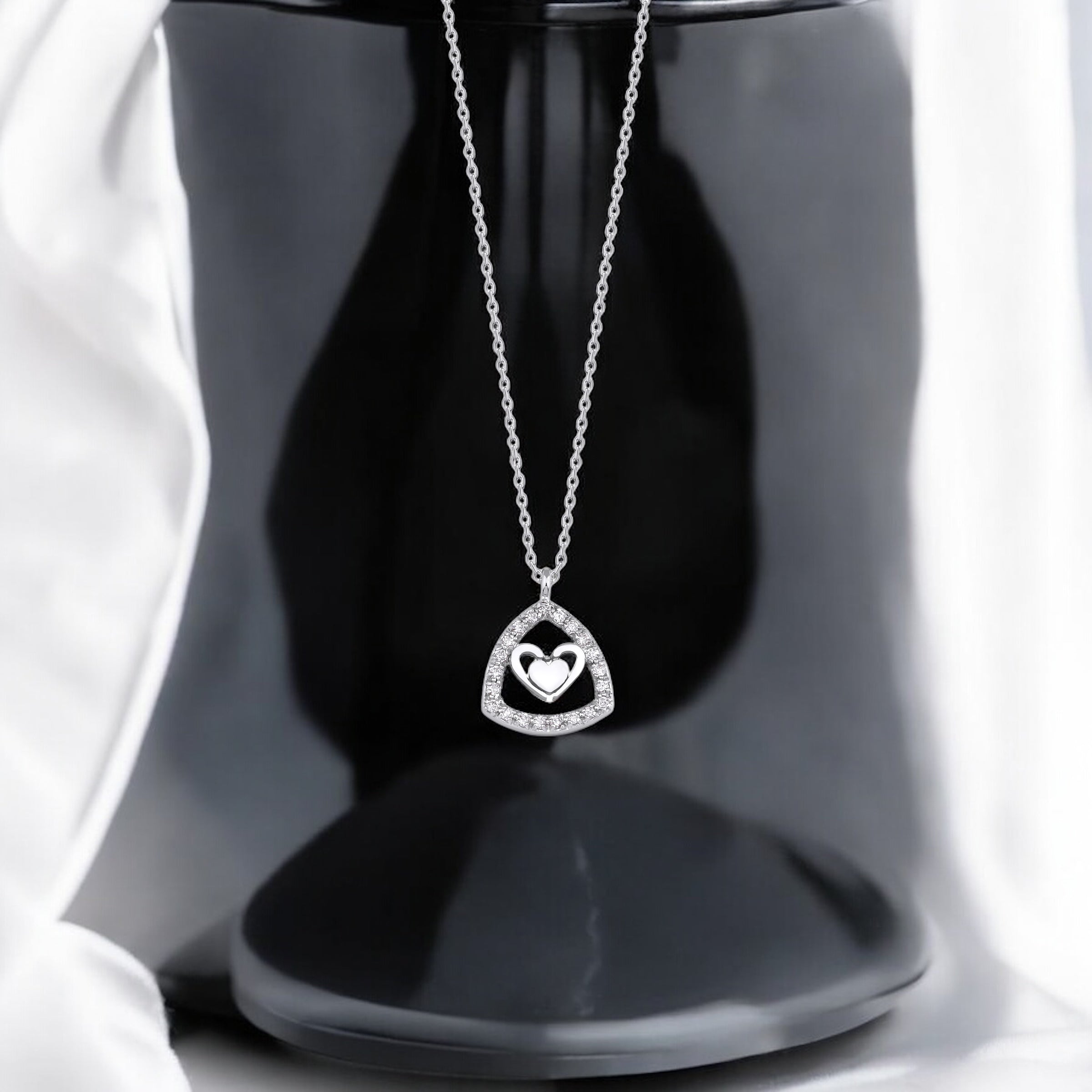 14K Solid Gold Eternal Triangel Heart Diamond Necklace